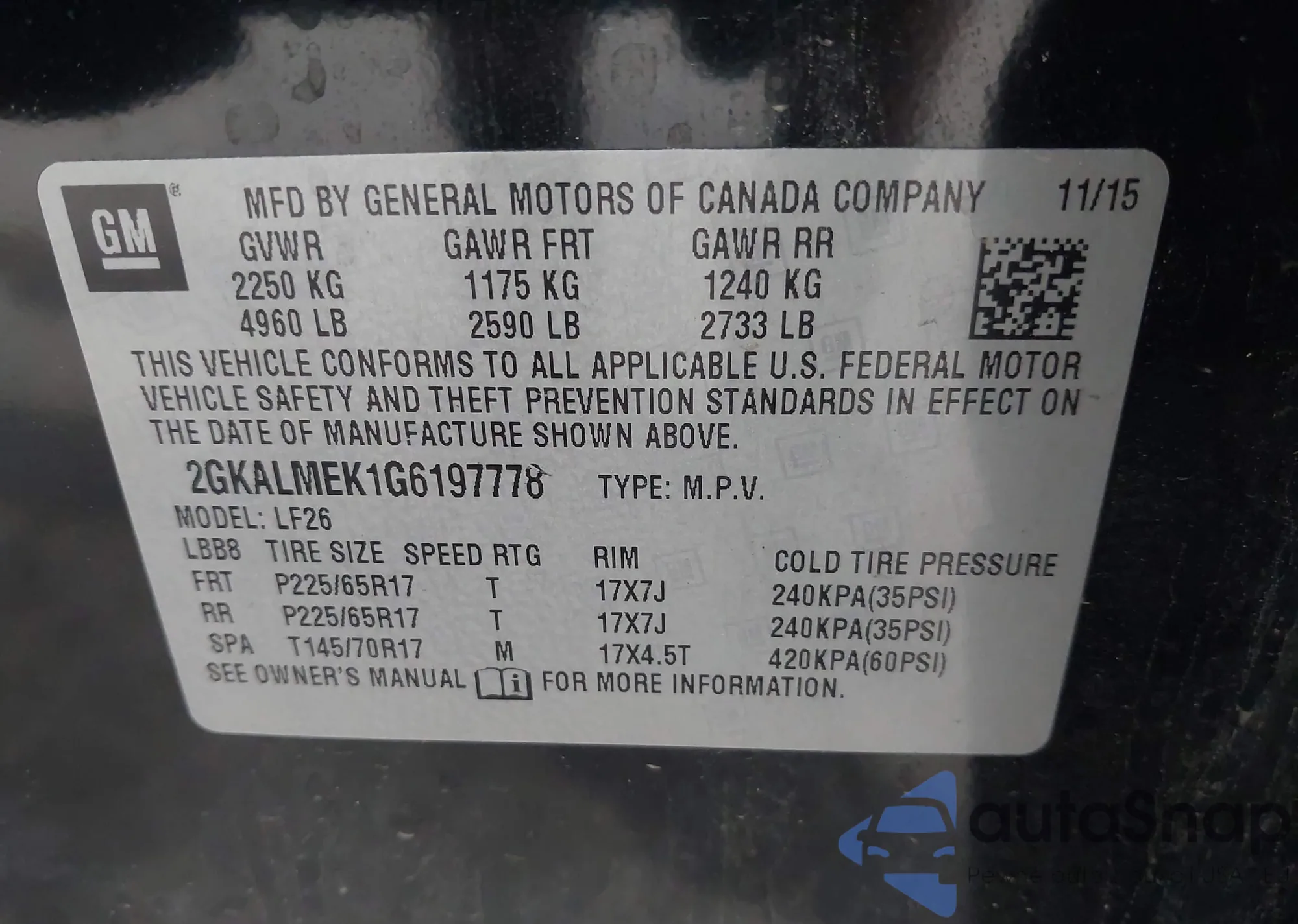 • VIN 2GKALMEK1G6197778