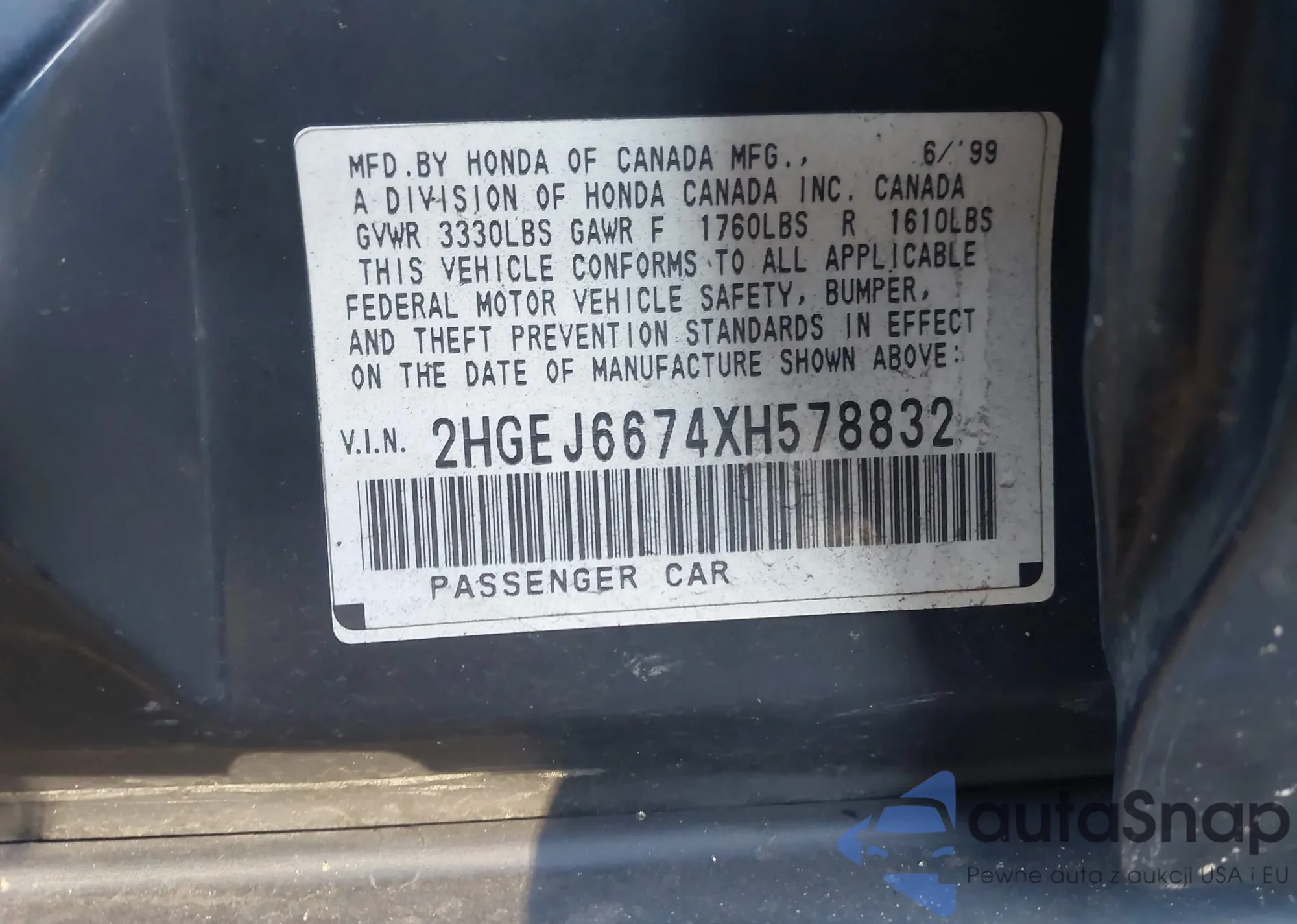 • VIN 2HGEJ6674XH578832