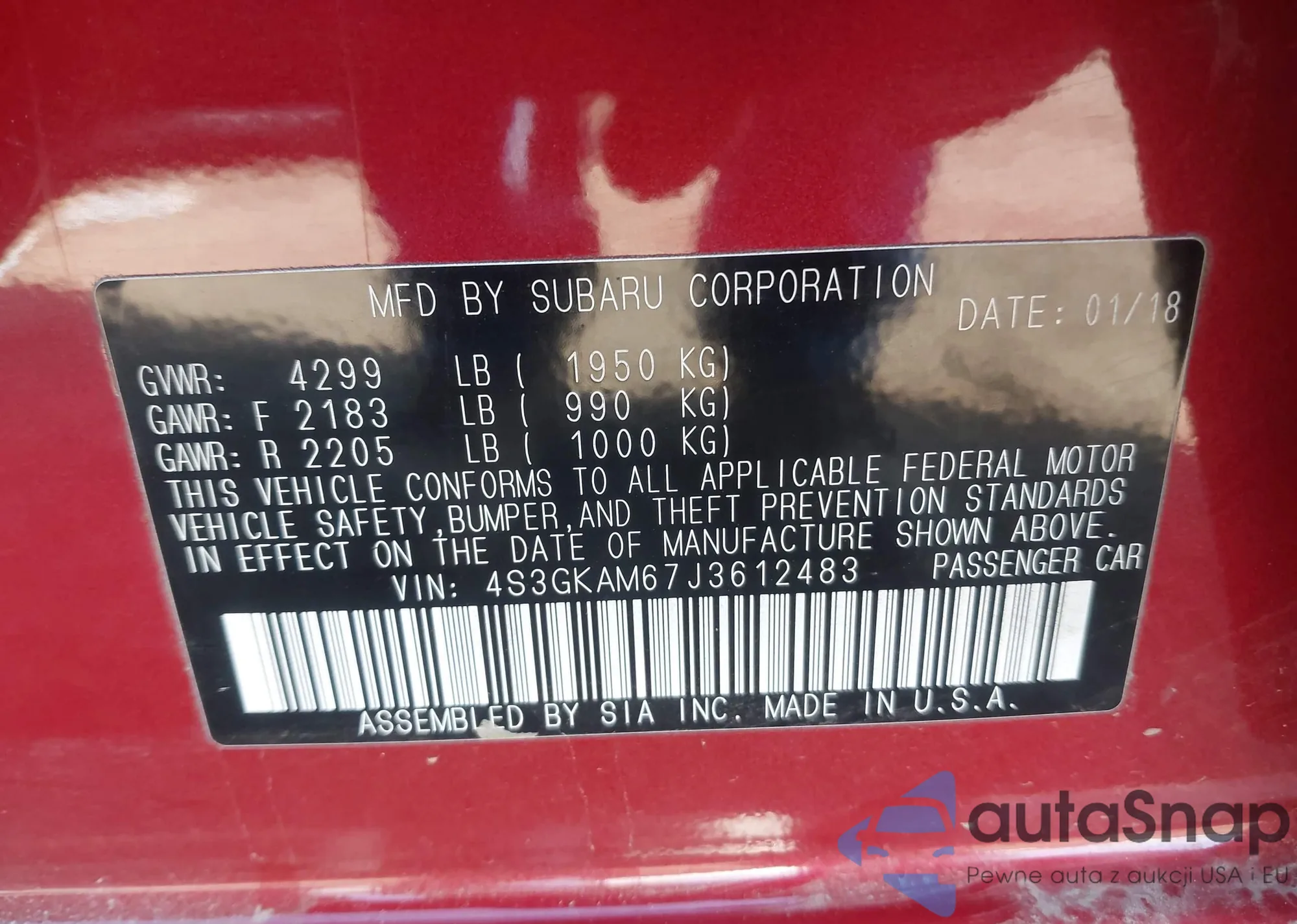 • VIN 4S3GKAM67J3612483
