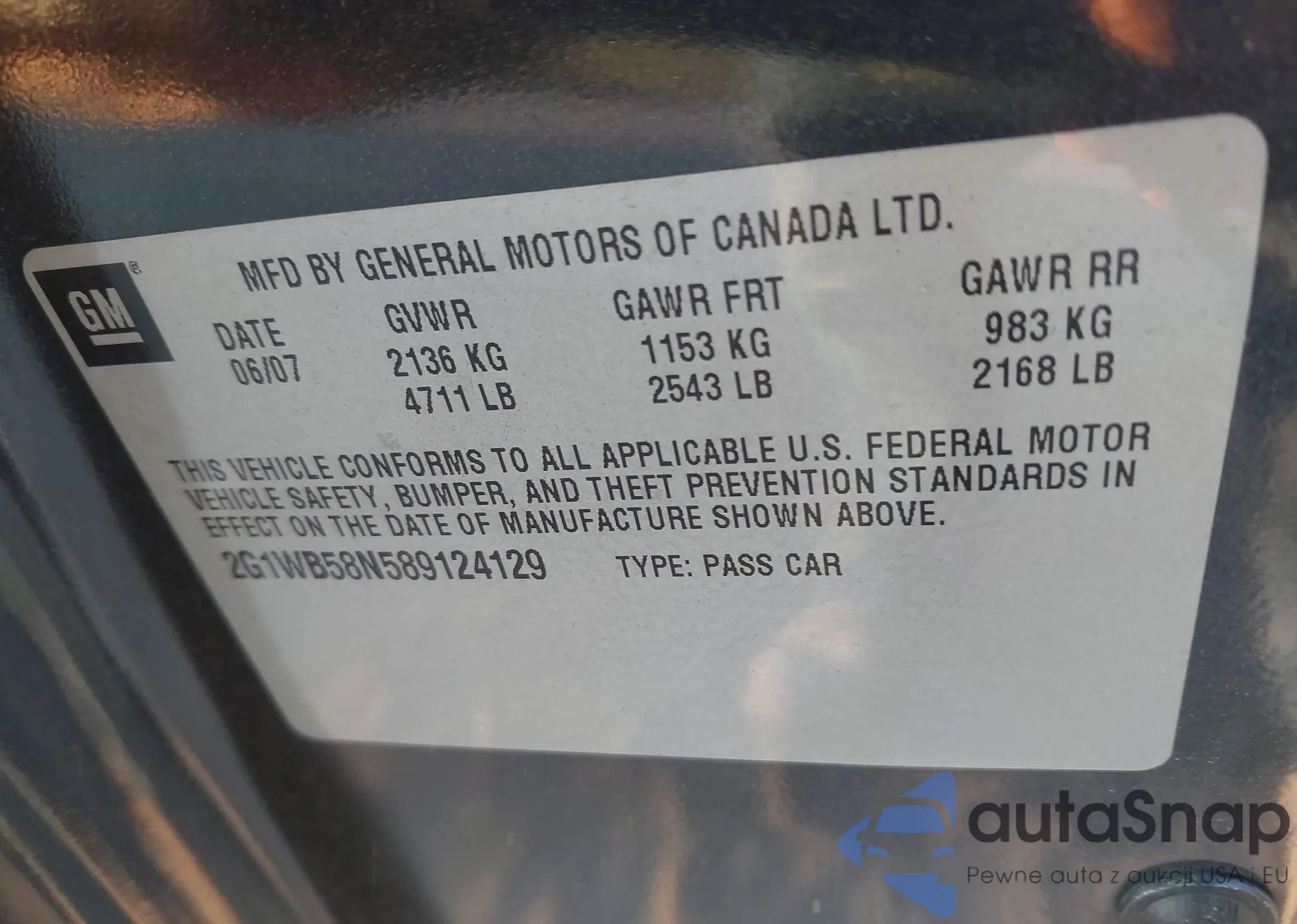 • VIN 2G1WB58N589124129