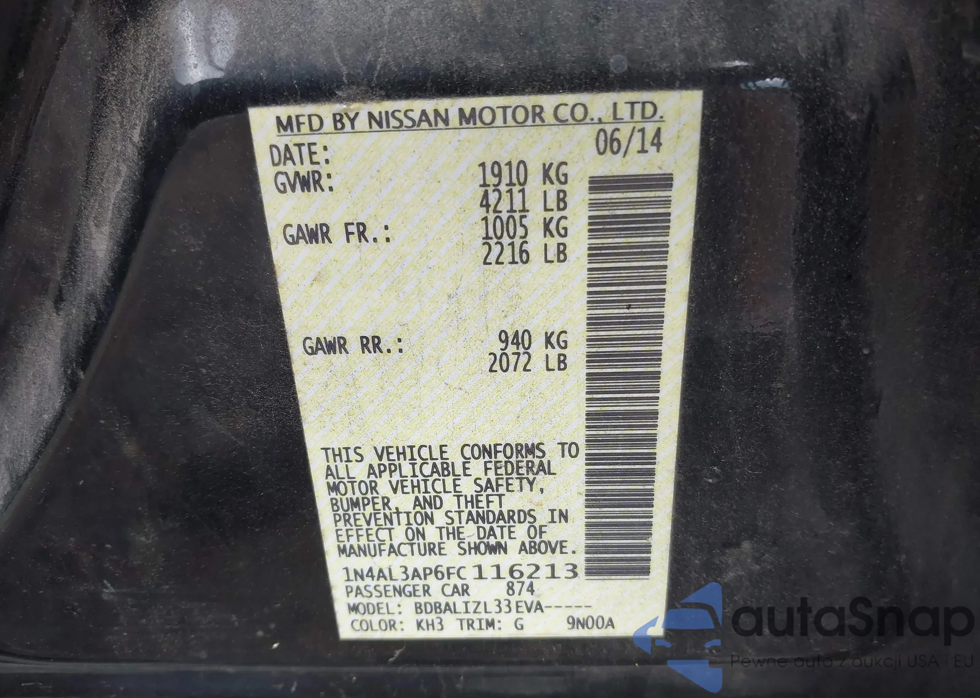 LOT: 43255719 VIN: 1N4AL3AP6FC116213