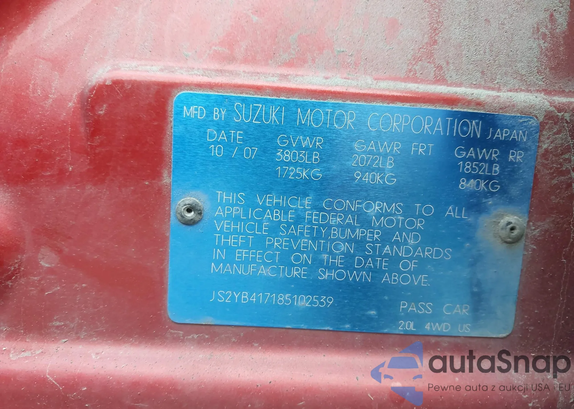 • VIN JS2YB417185102539