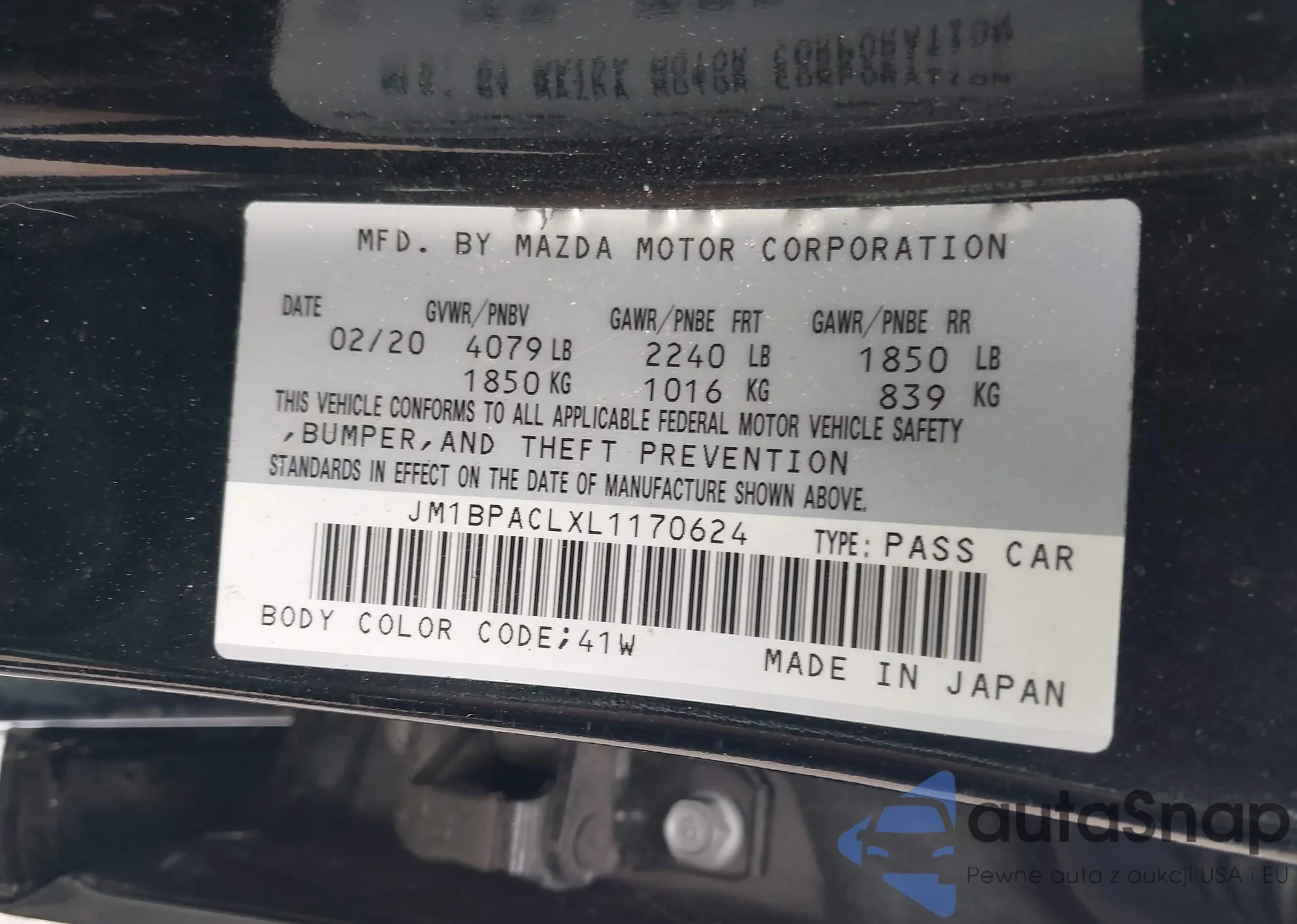 LOT: 43321017 VIN: JM1BPACLXL1170624