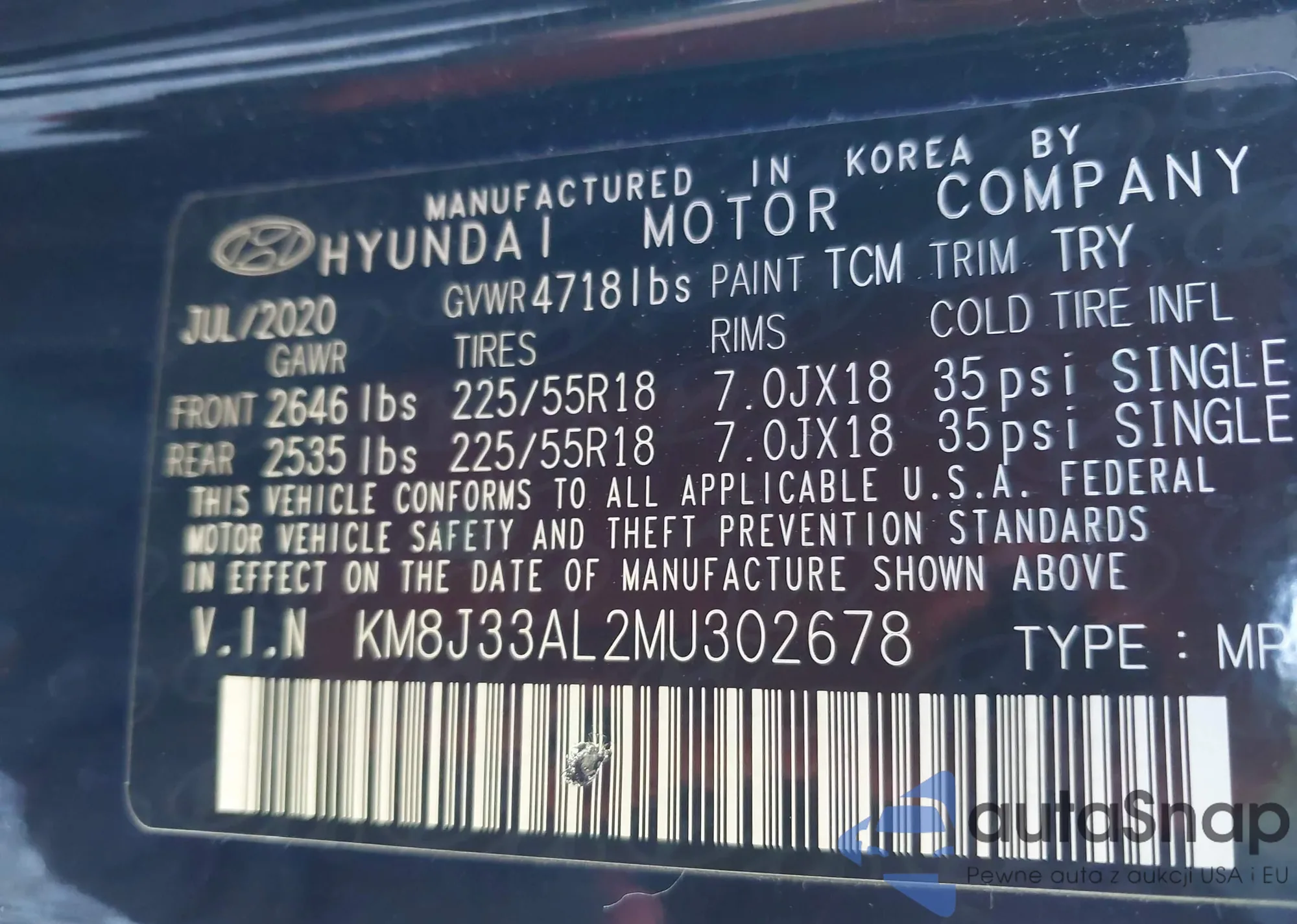 • VIN KM8J33AL2MU302678