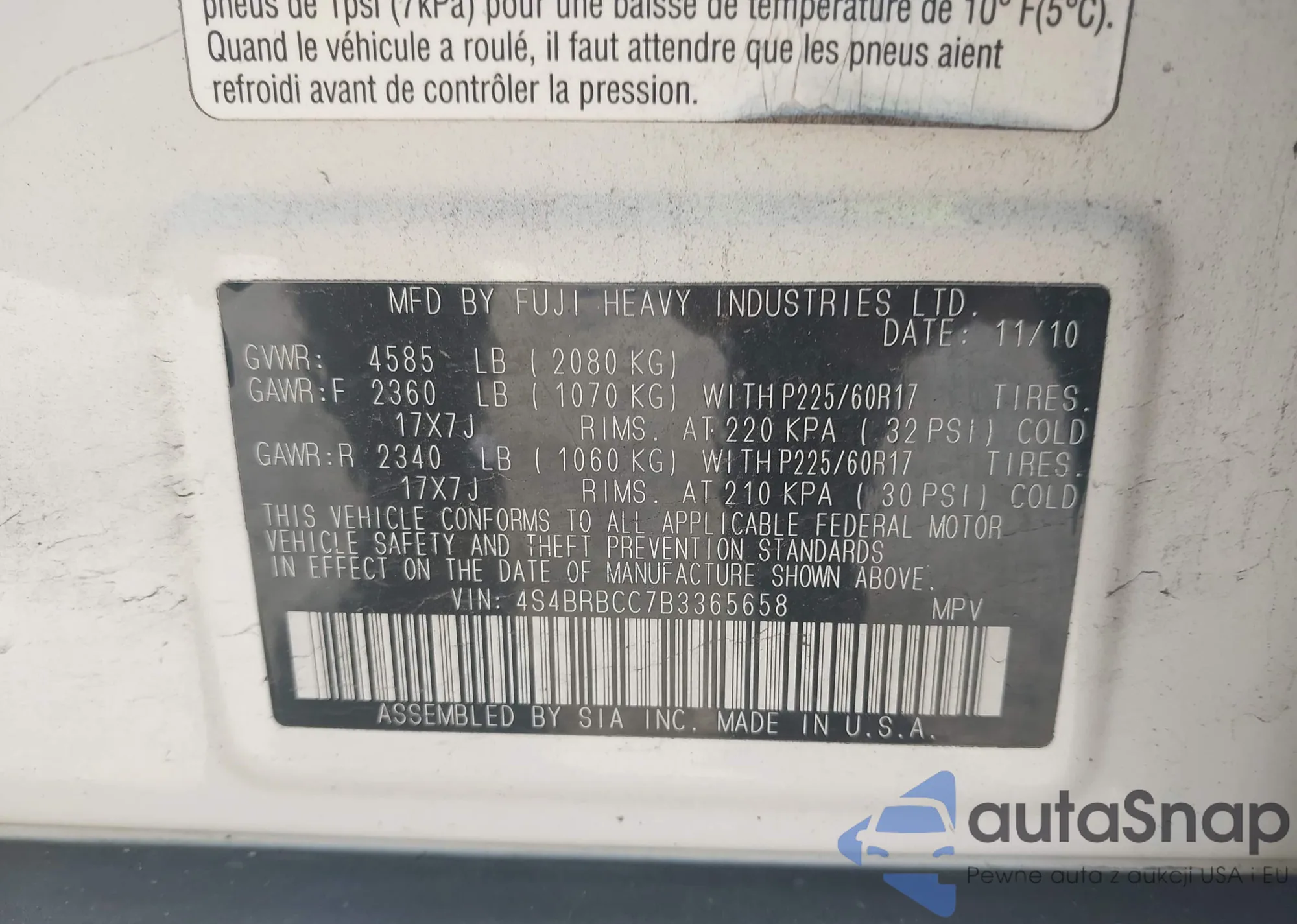 LOT: 43457508 VIN: 4S4BRBCC7B3365658