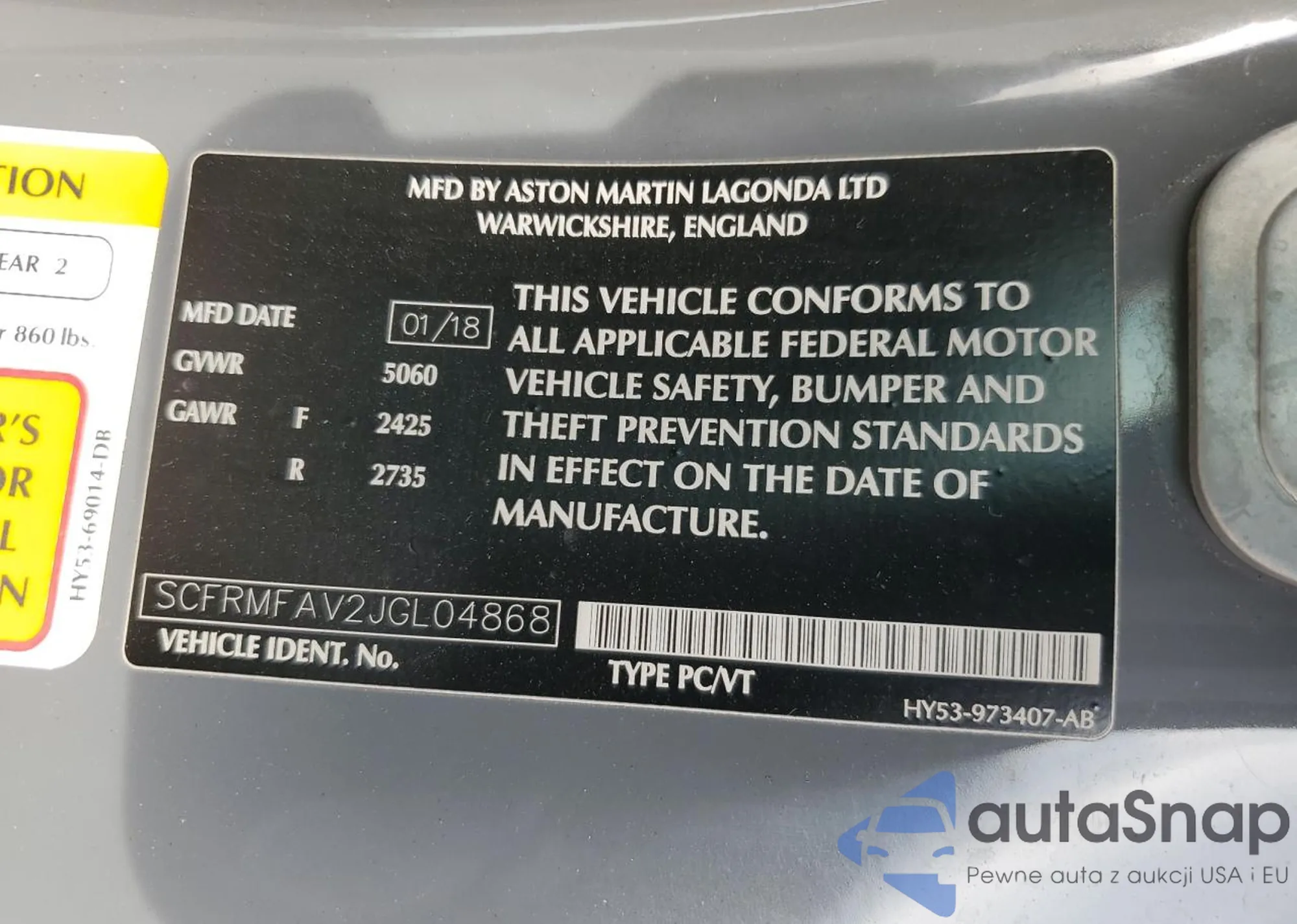 2018 Aston Martin Db11 из США, поврежденный, VIN SCFRMFAV2JGL04868