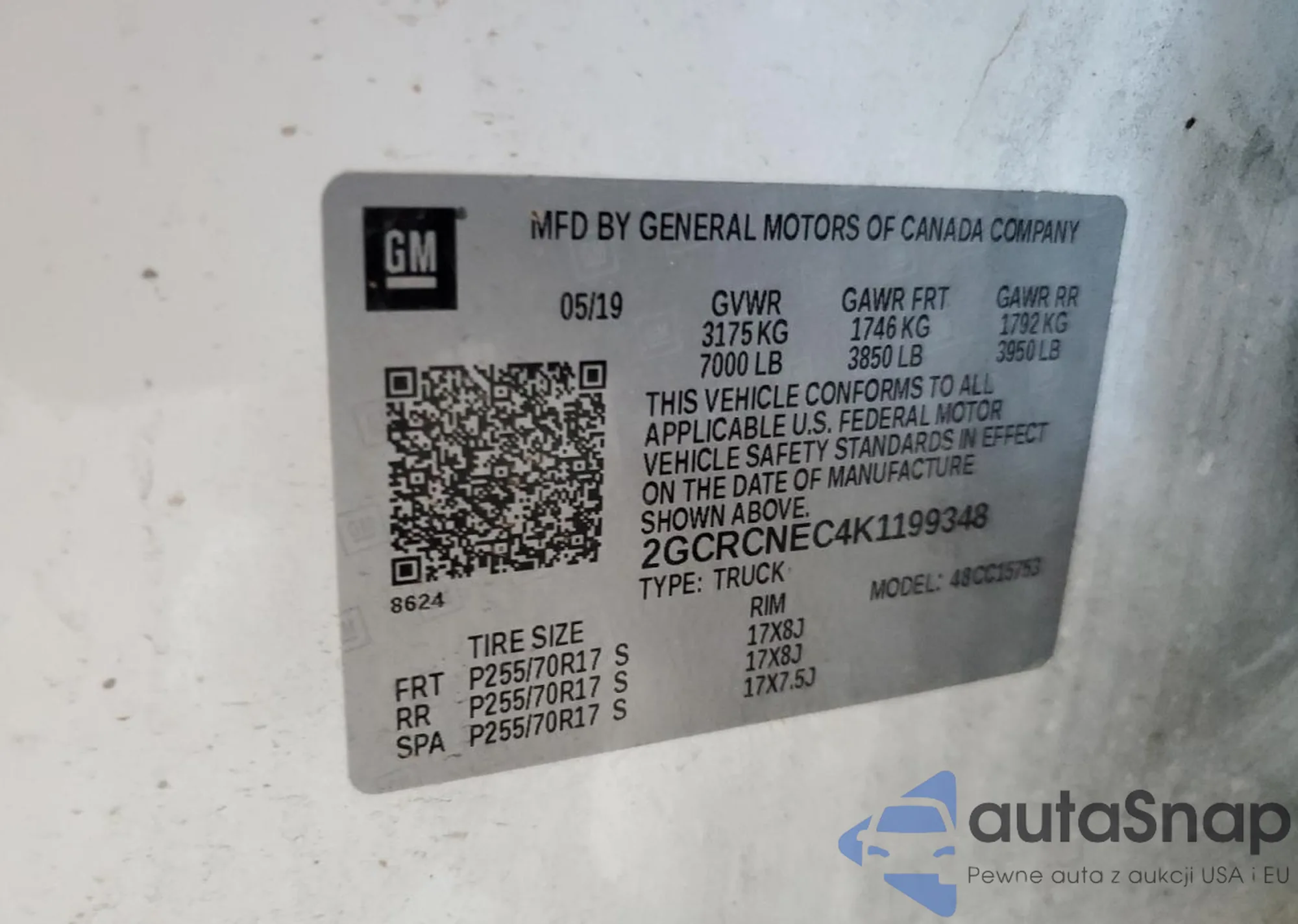 • VIN KL8CA6S96EC462781