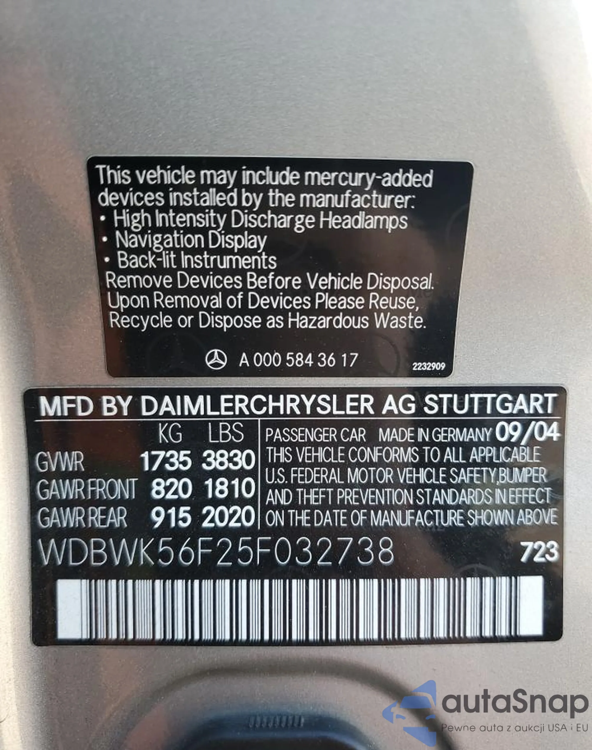 LOT: 82088775 VIN: WDBWK56F25F032738