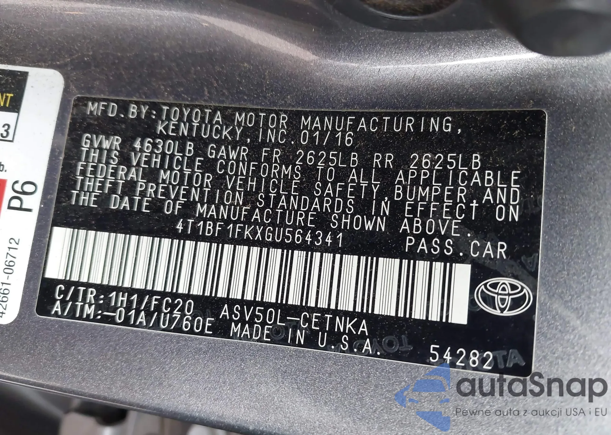 • VIN 4T1BF1FKXGU564341