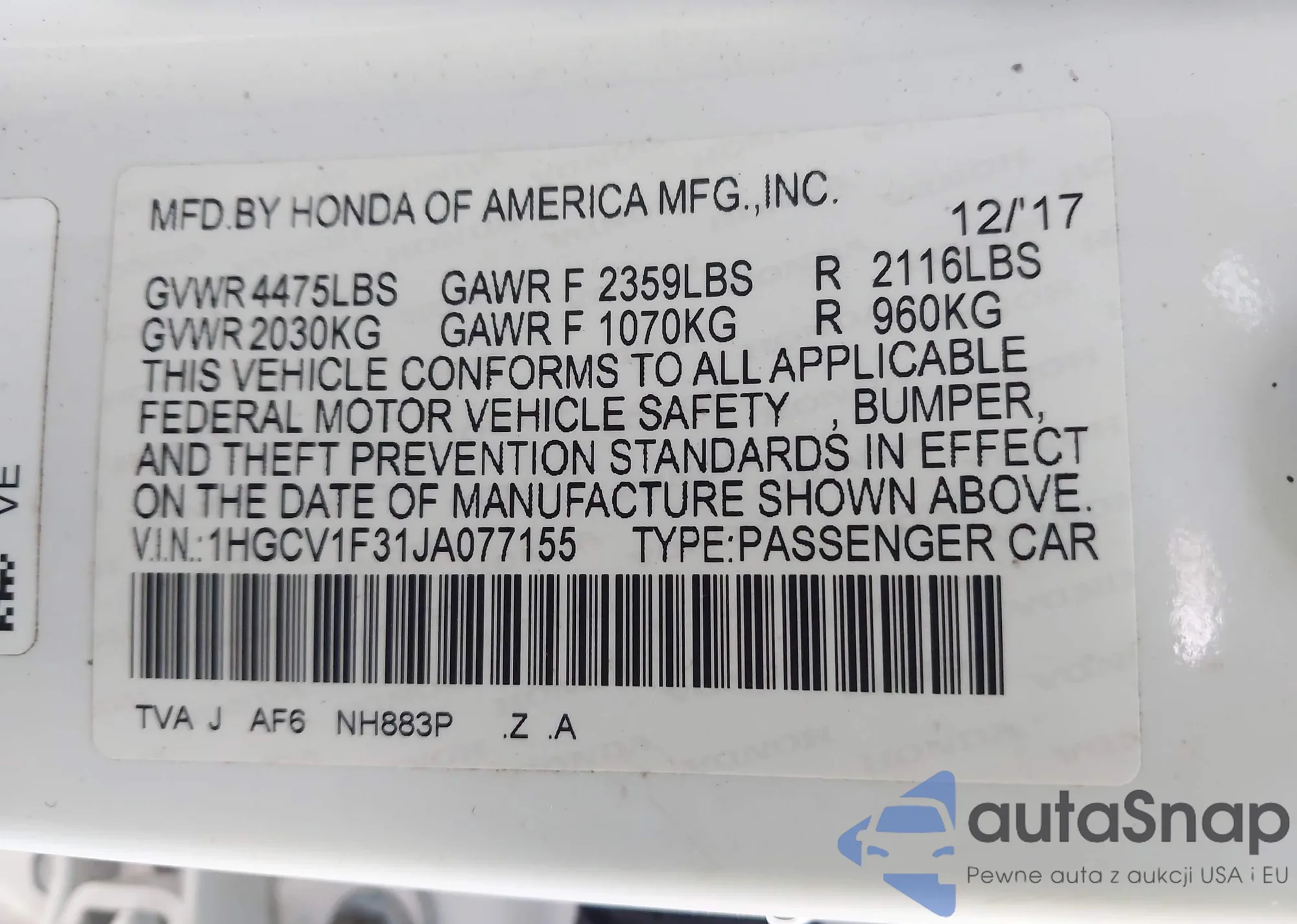 • VIN 19XFC1F98HE018536