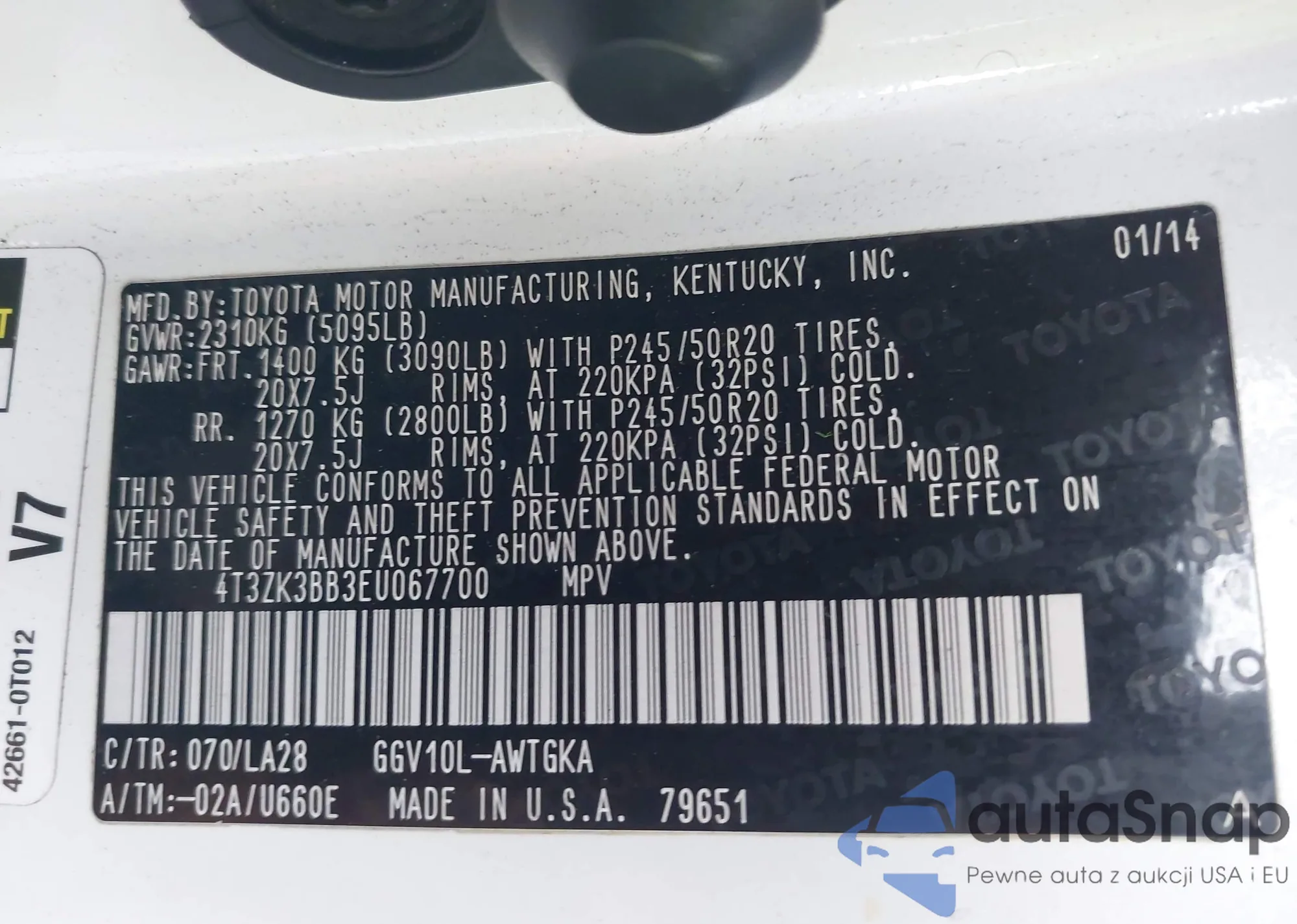 • VIN 4T3ZK3BB3EU067700