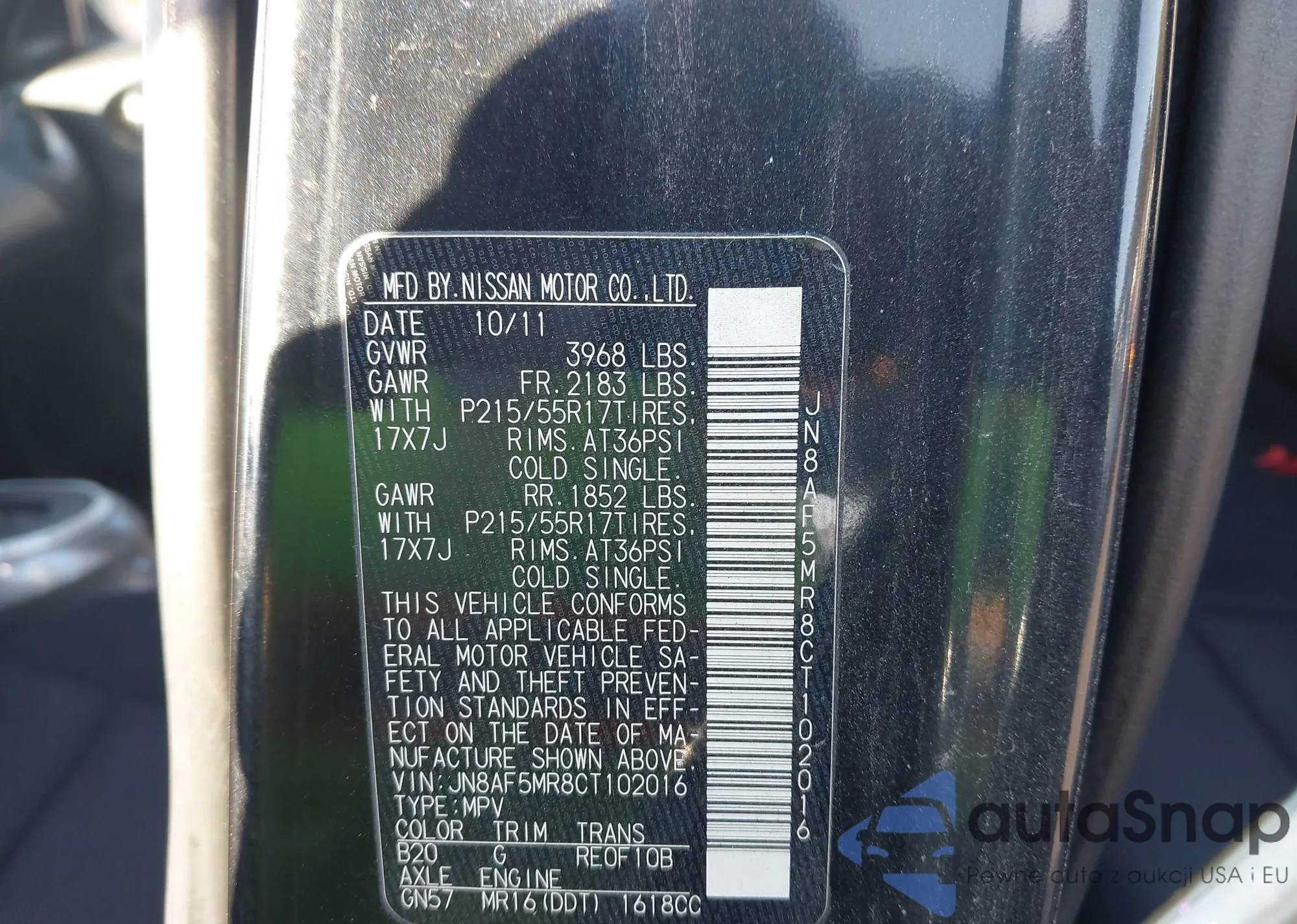 LOT: 43511449 VIN: JN8AF5MR8CT102016
