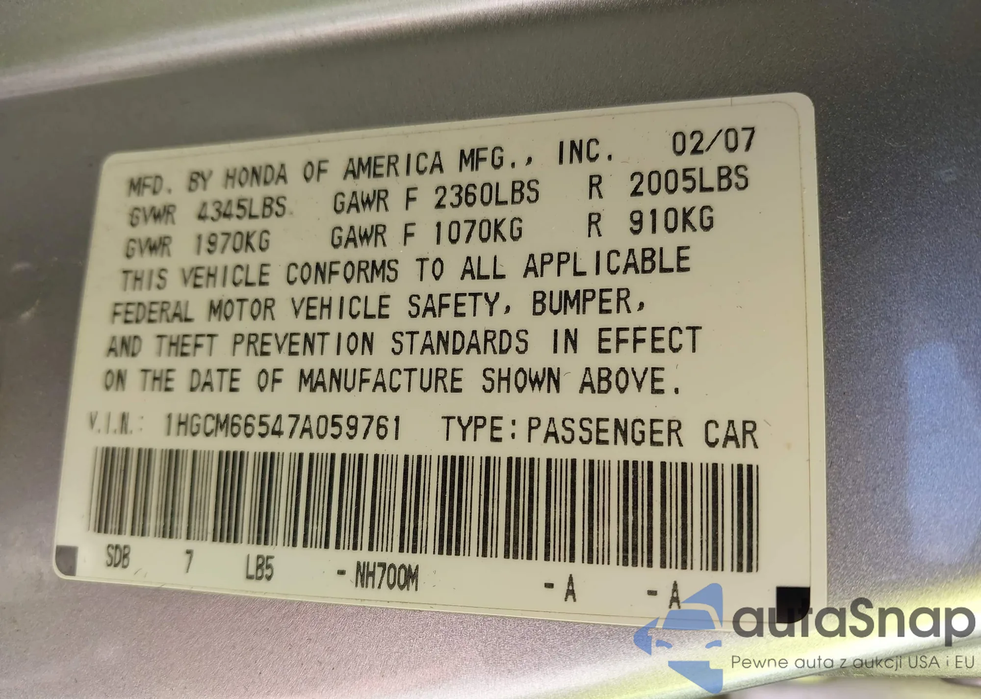 • VIN 1N4BL4DV7SN370273