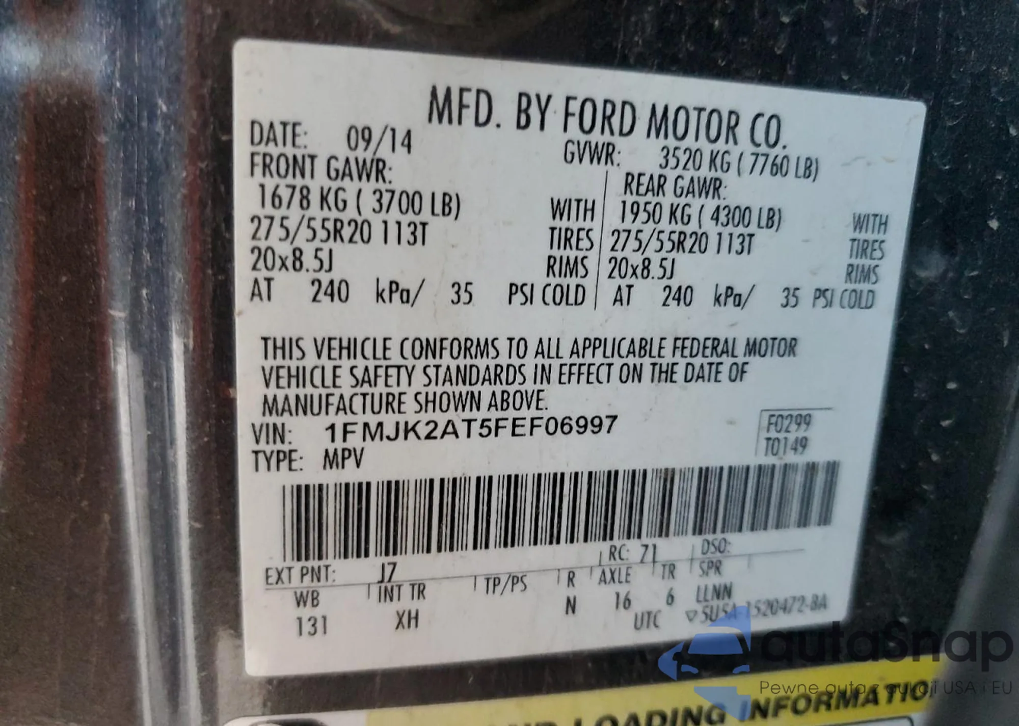 • VIN 1FMJK2AT5FEF06997