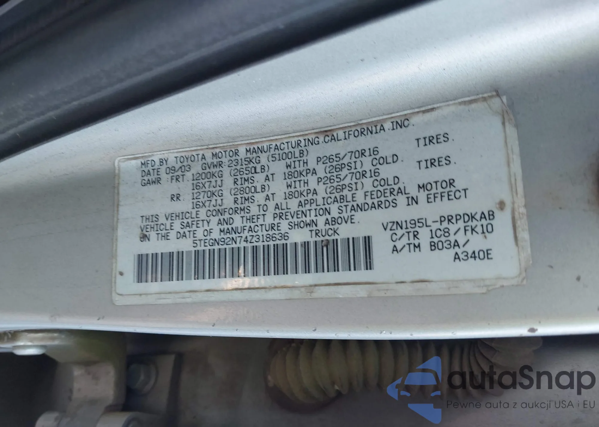 LOT: 86278135 VIN: 3TMAZ5CN4HM037804