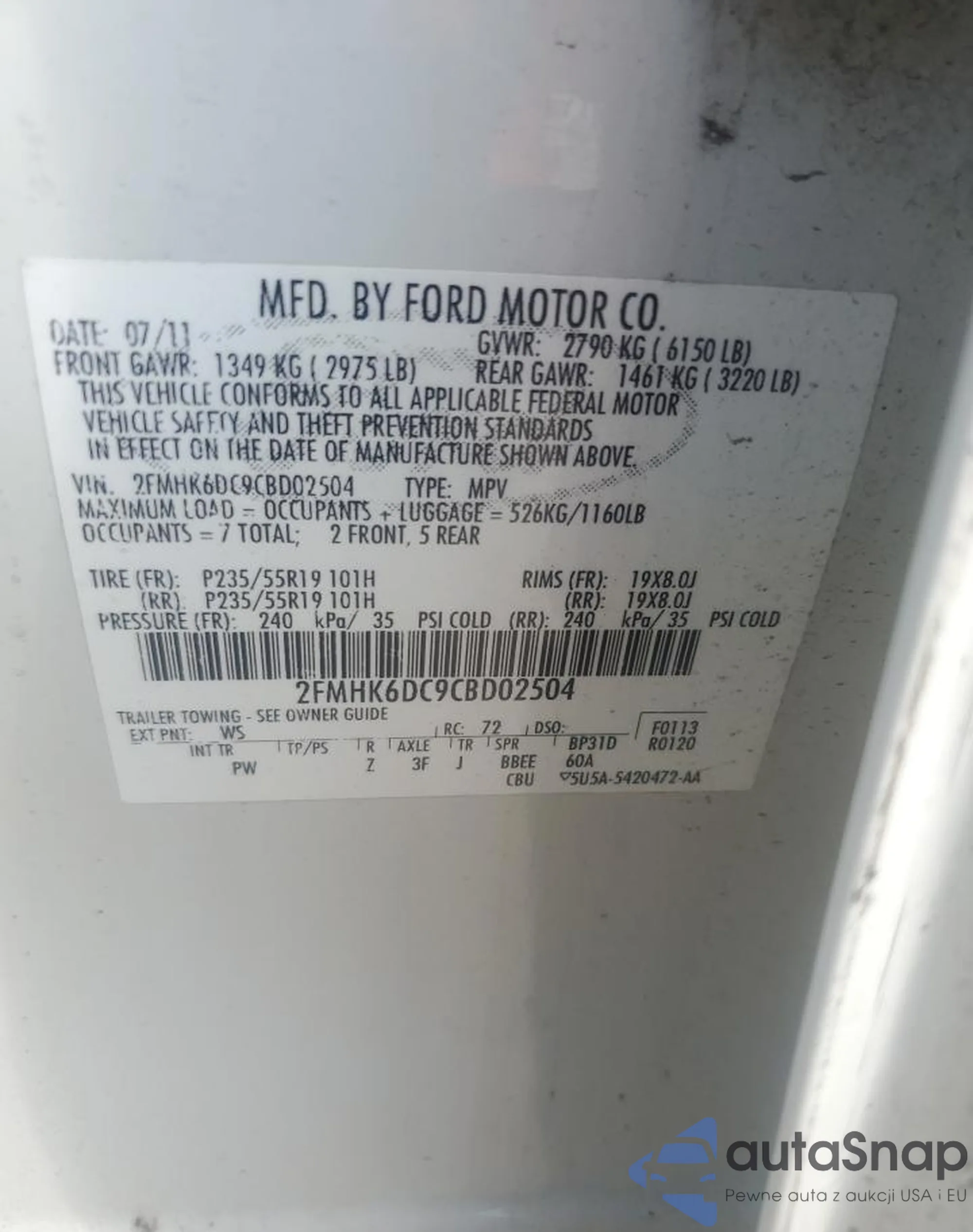 • VIN 2FMHK6DC9CBD02504