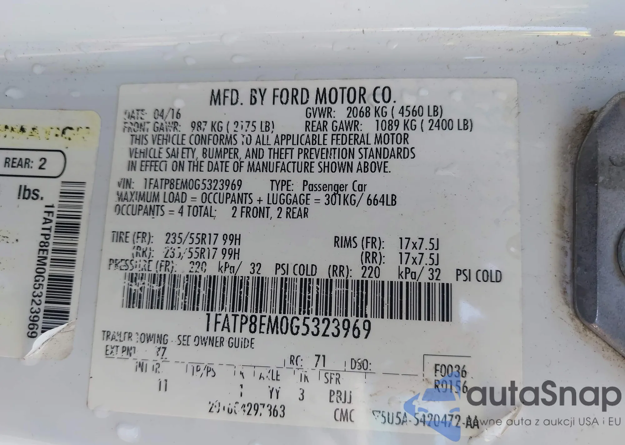 LOT: 43197866 VIN: 1FATP8EM0G5323969