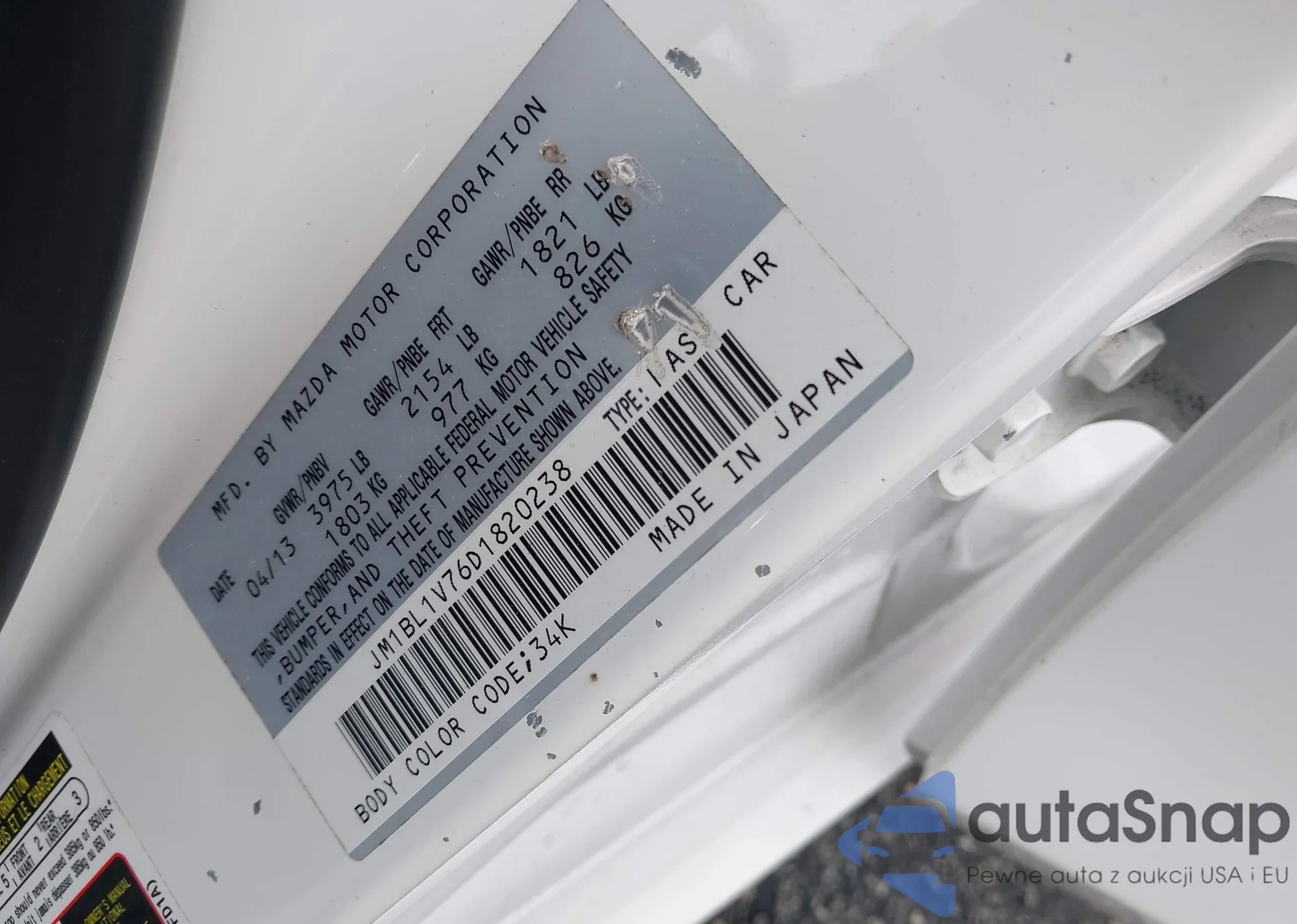 • VIN JM1BL1V76D1820238