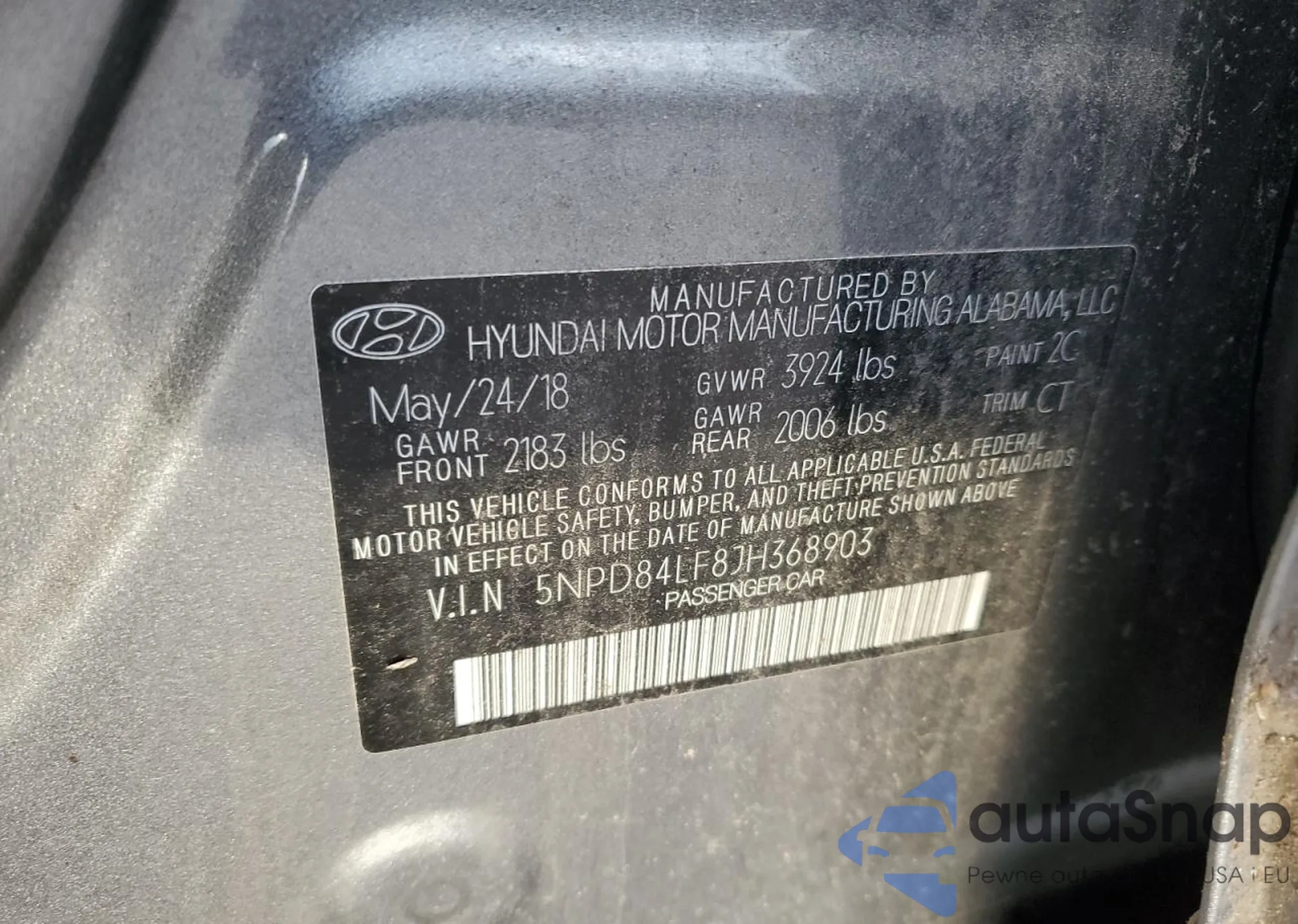 • VIN 5NPD84LF8JH368903