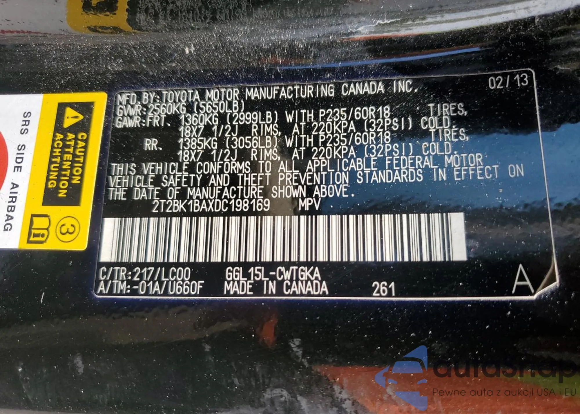 LOT: 81799095 VIN: 5XYKUCA68DG367620