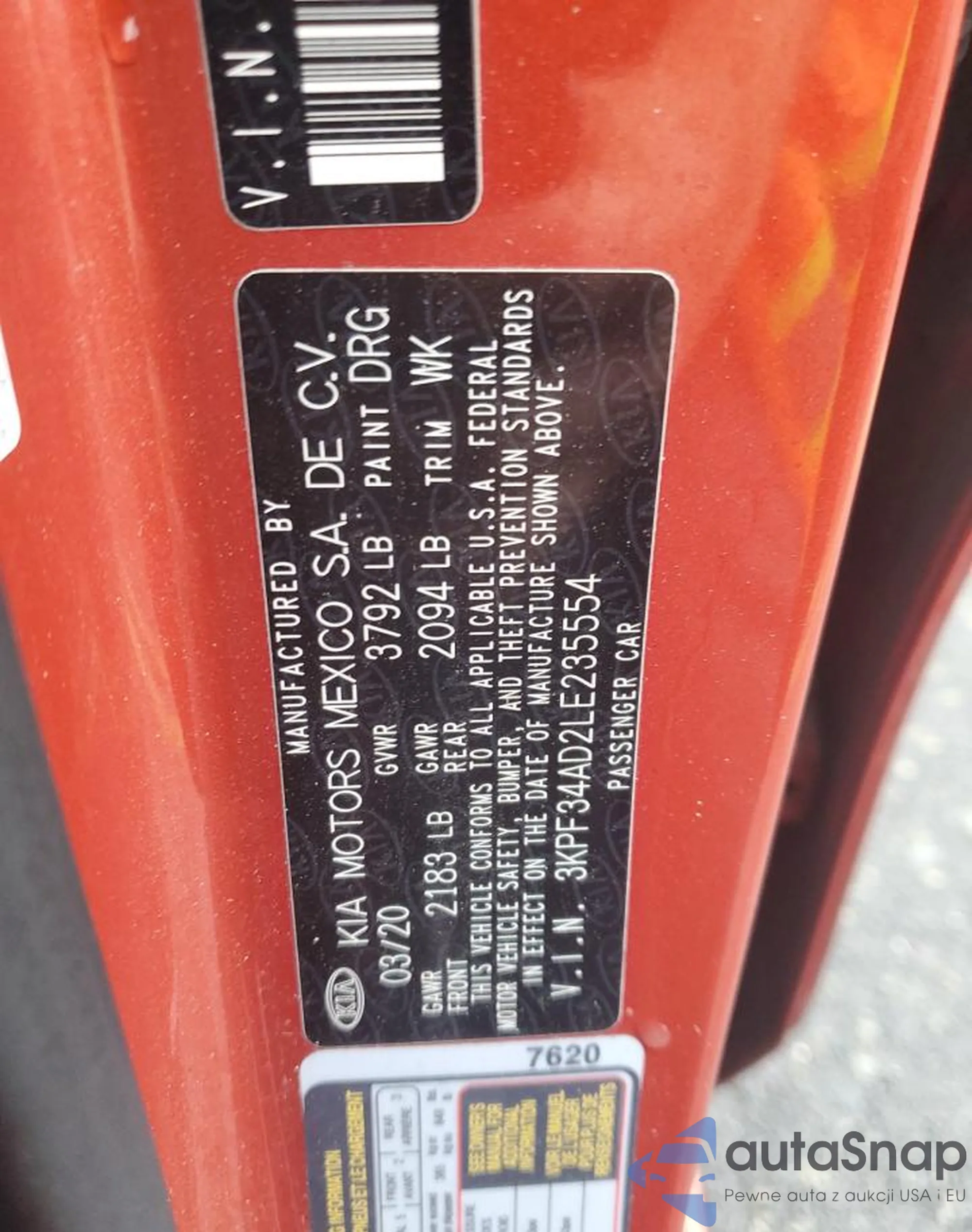 • VIN 3KPF34AD2LE235554