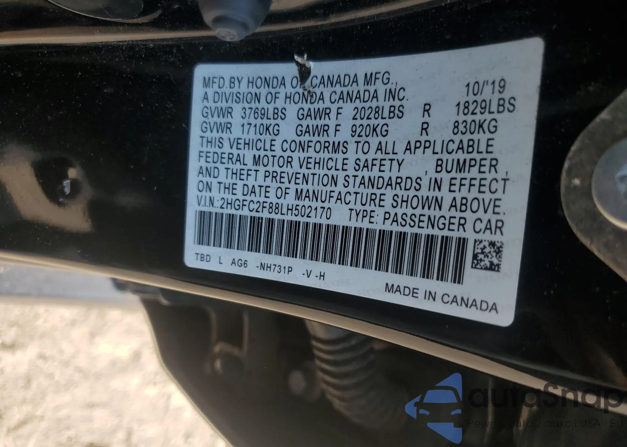 • VIN 2HGFC2F88LH502170