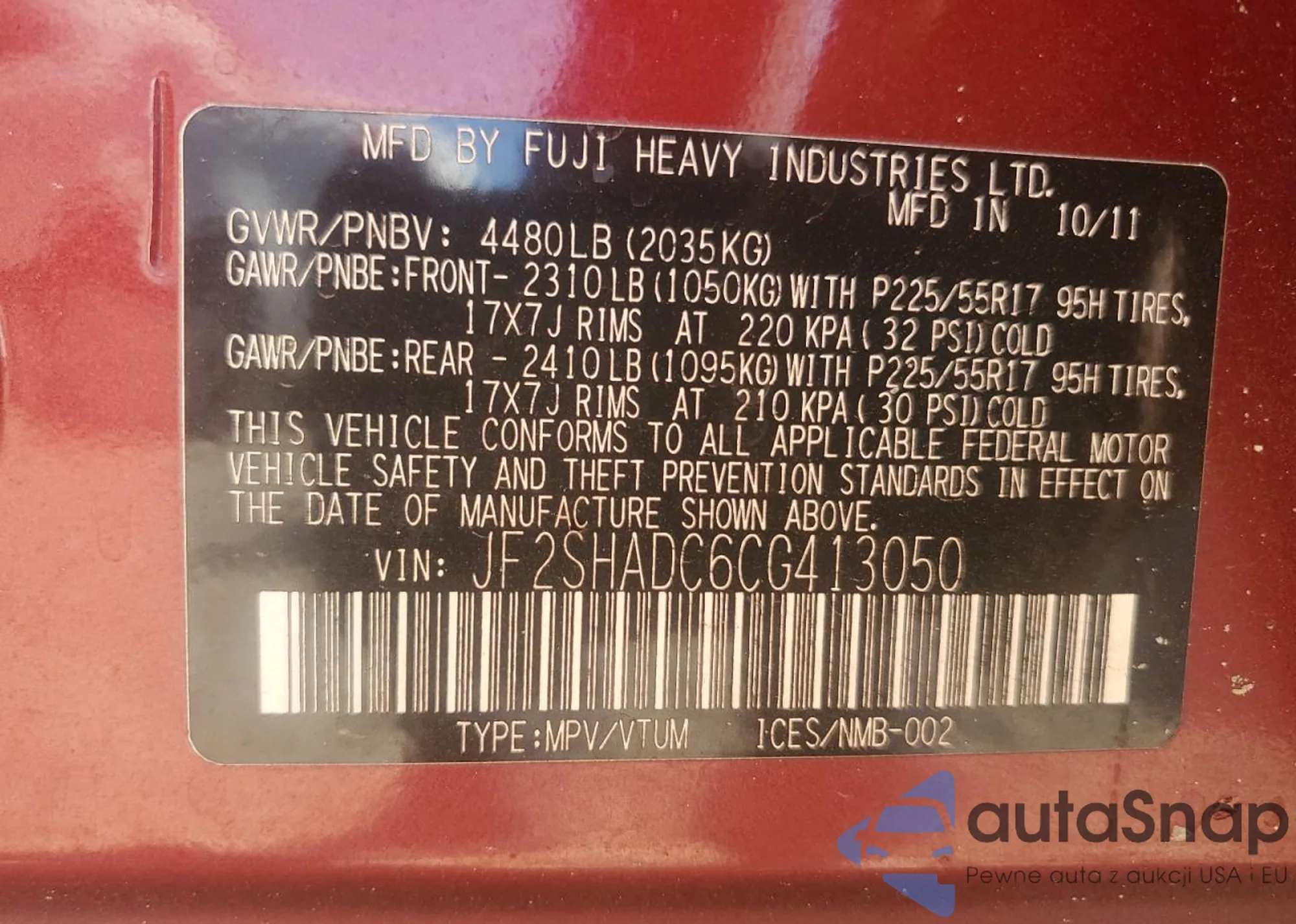 • VIN 4S4BSABC3K3249583