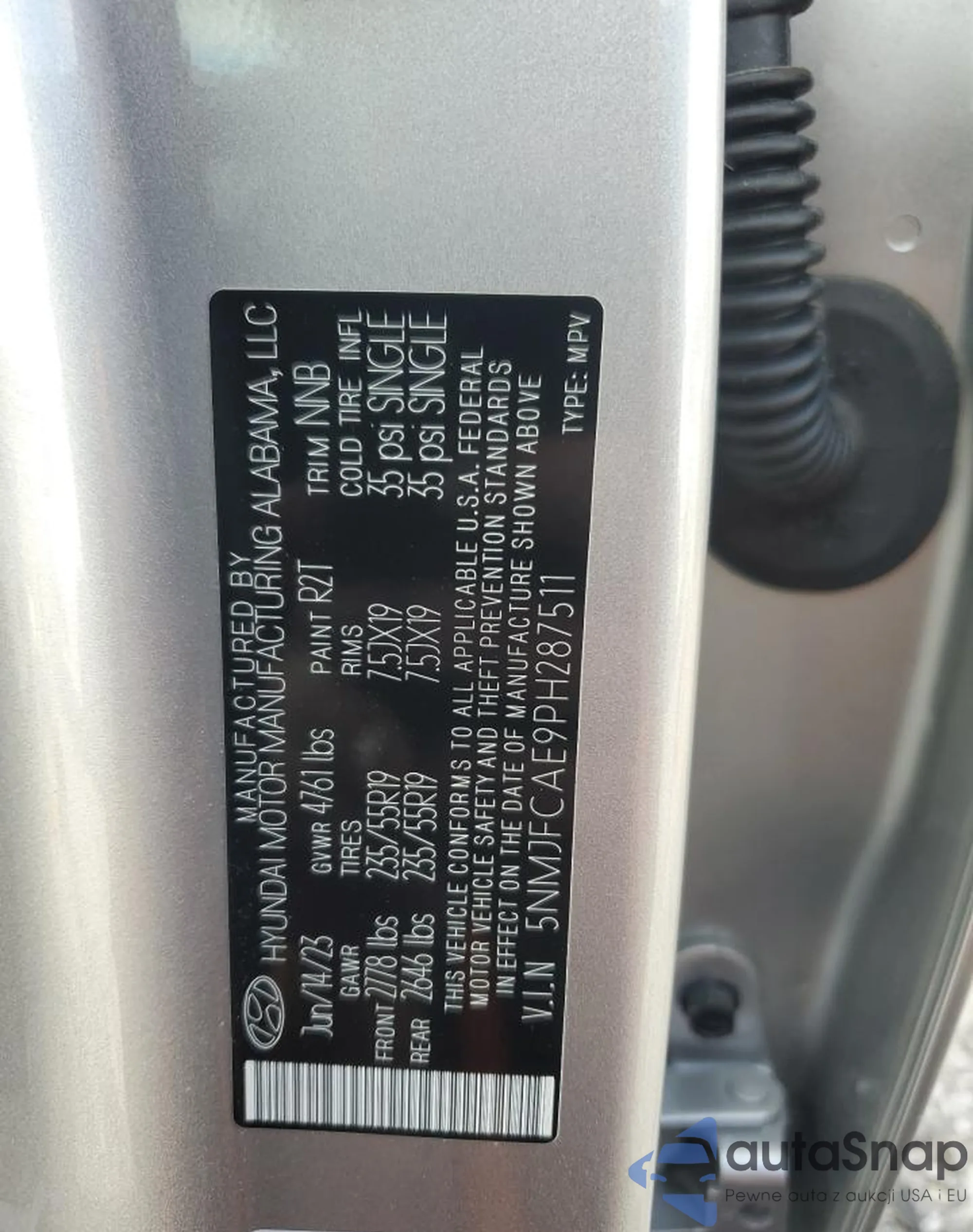 • VIN 5NMJFCAE9PH287511