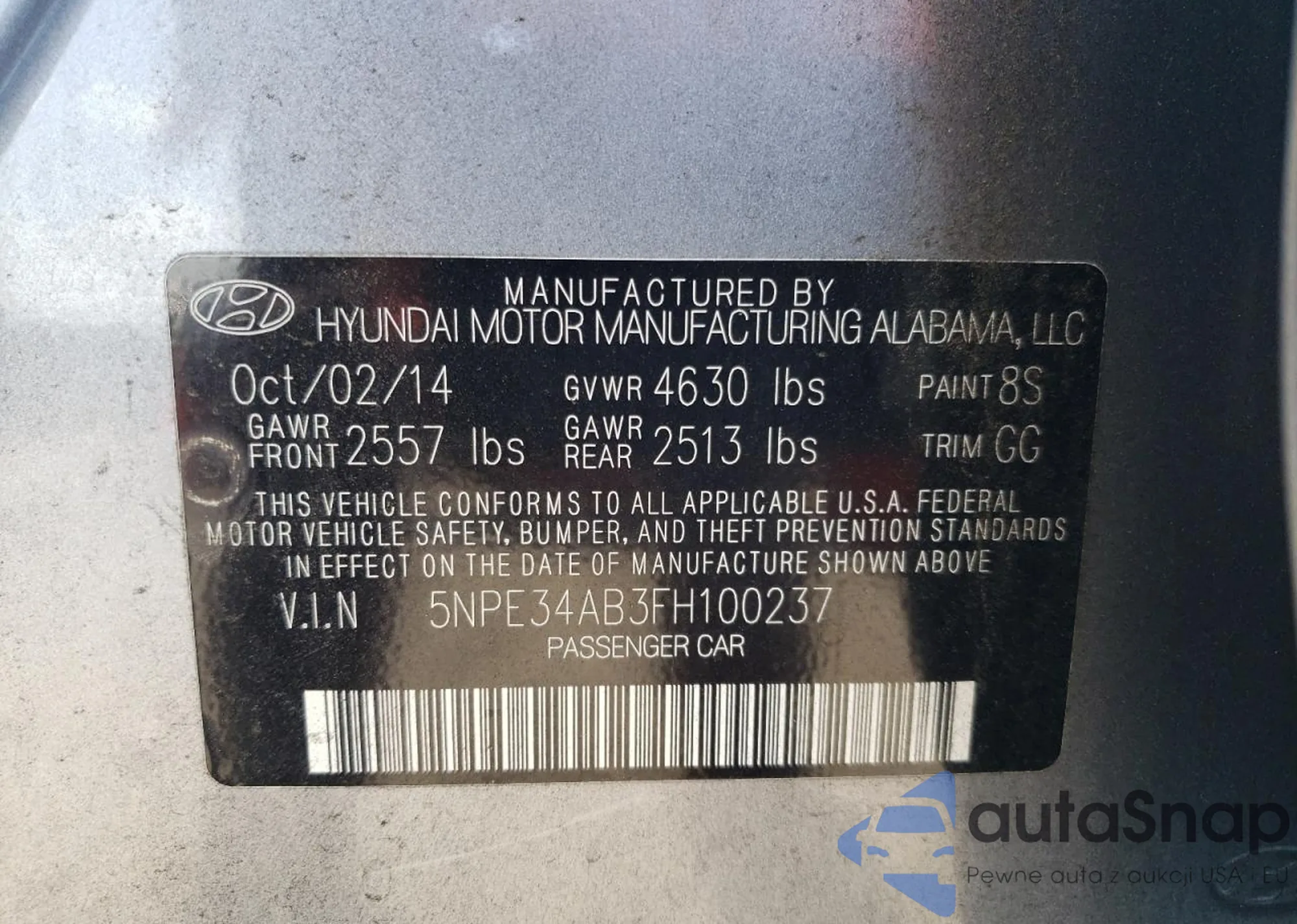 • VIN 5NPE34AB3FH100237