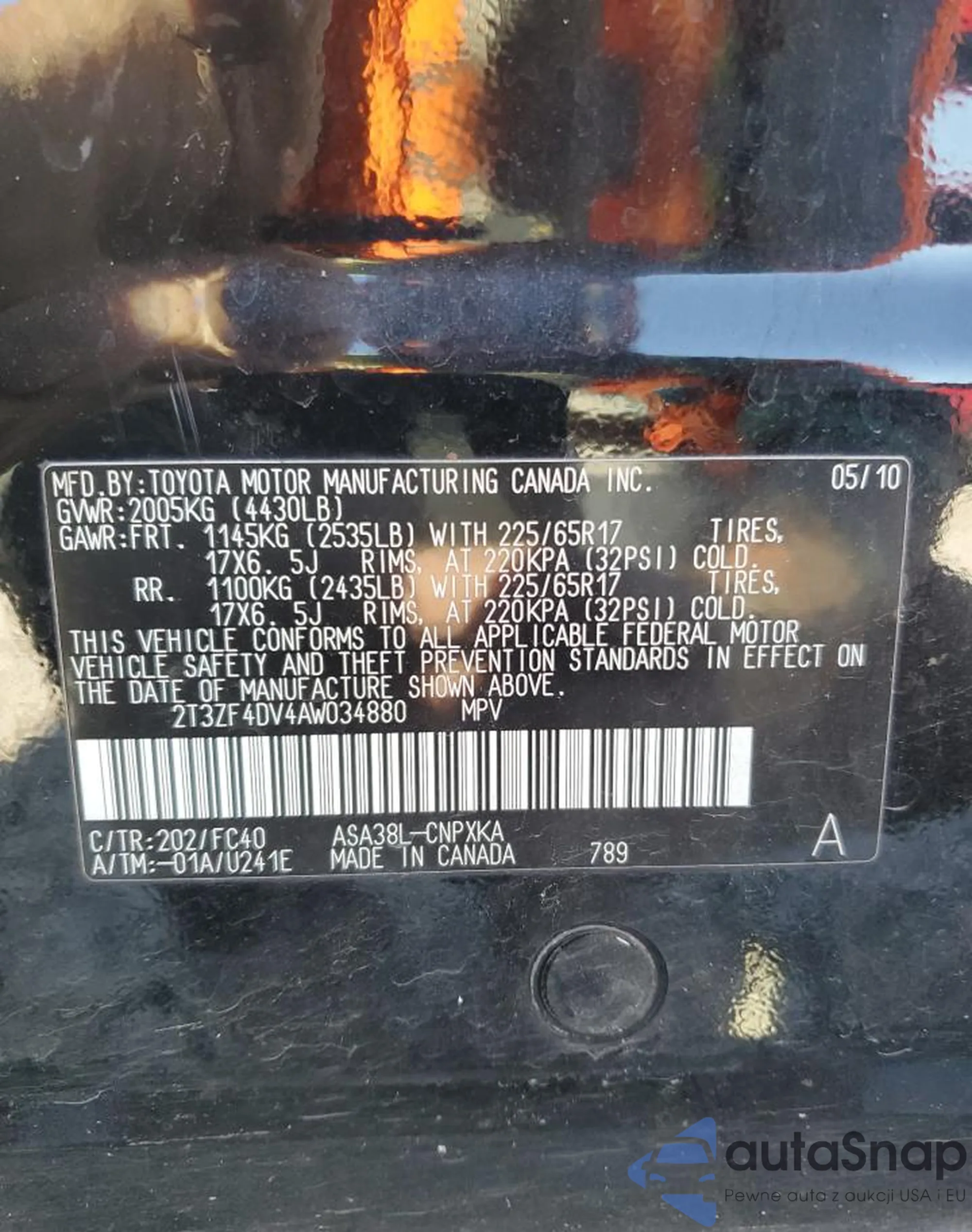 • VIN 2T3ZF4DV4AW034880