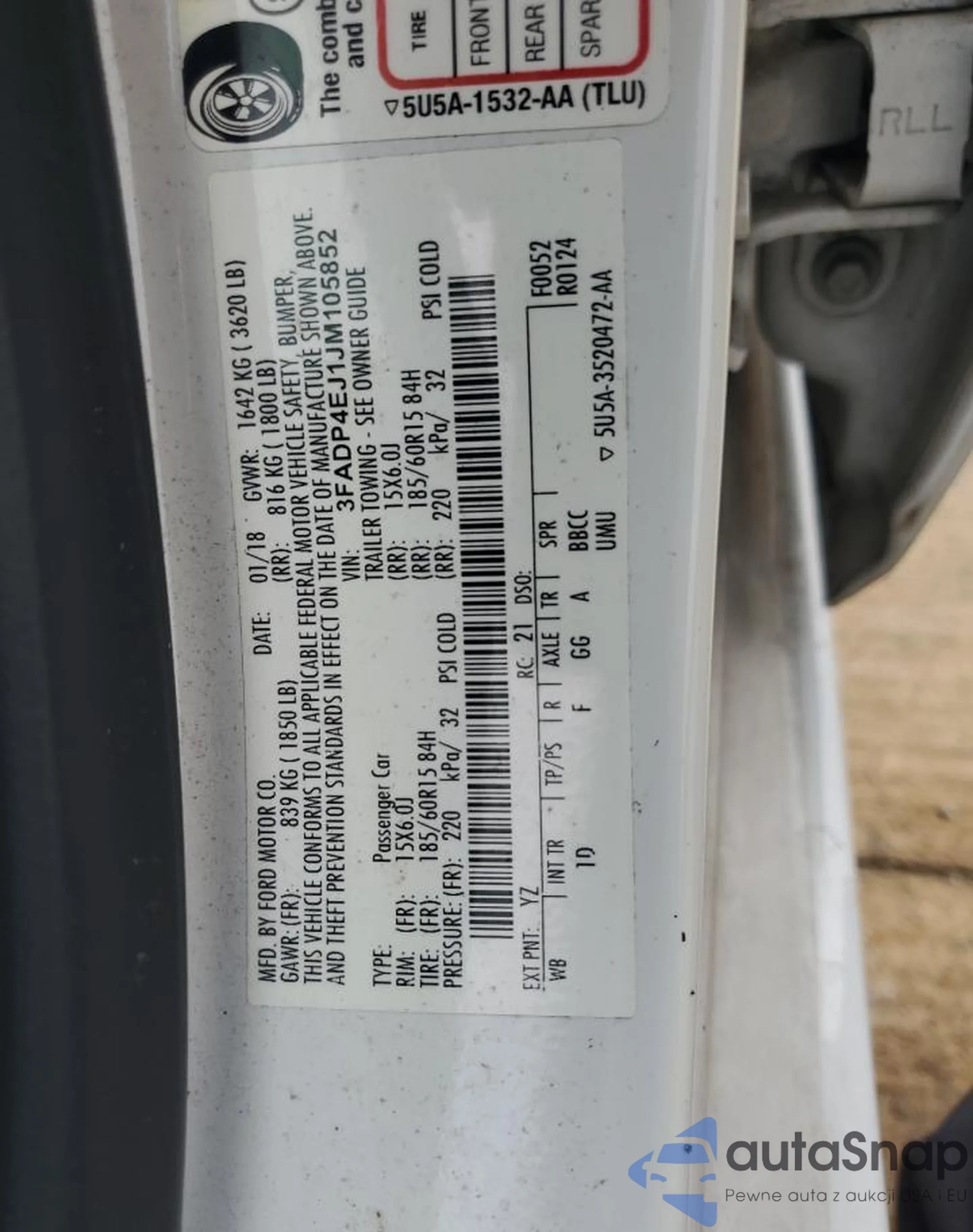 • VIN 3FADP4EJ1JM105852
