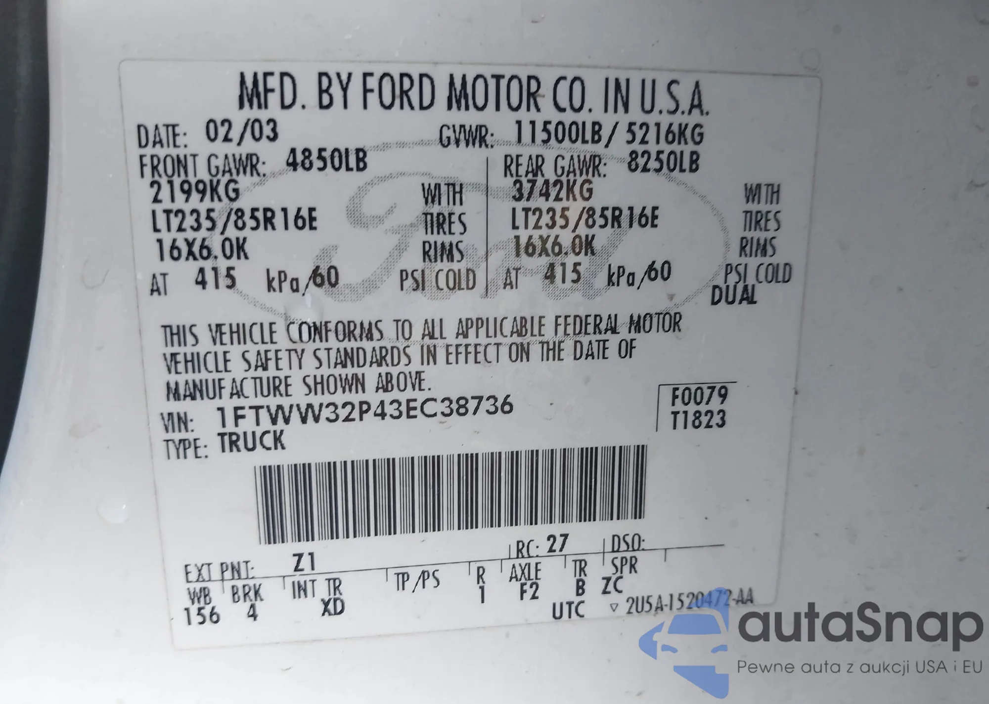 LOT: 42741077 VIN: 1FTWW32P43EC38736