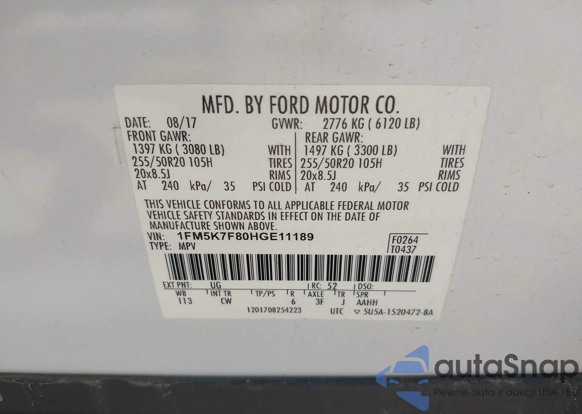 • VIN 1FMUK8KH6SGB58622