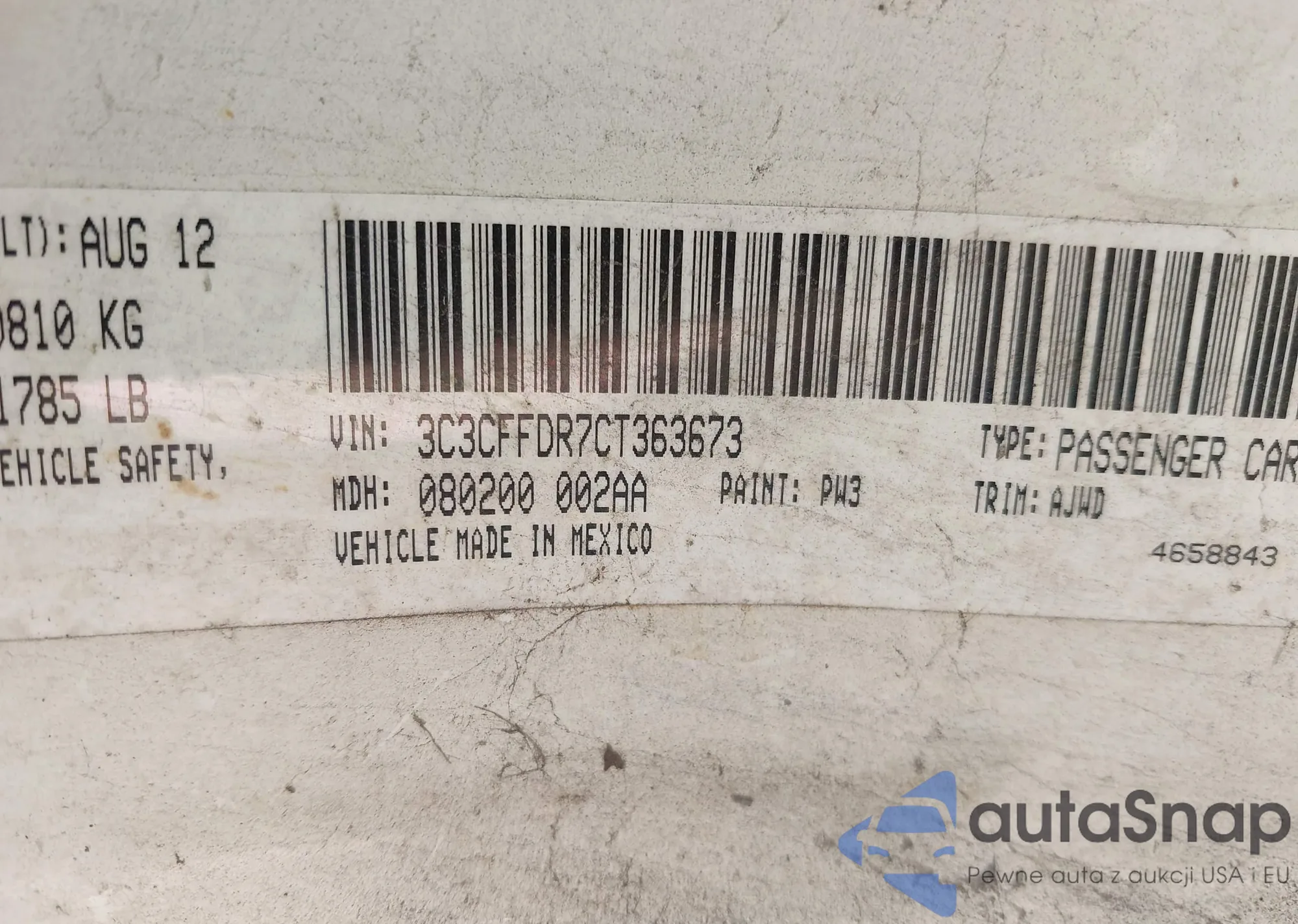 LOT: 43354804 VIN: 3C3CFFDR7CT363673