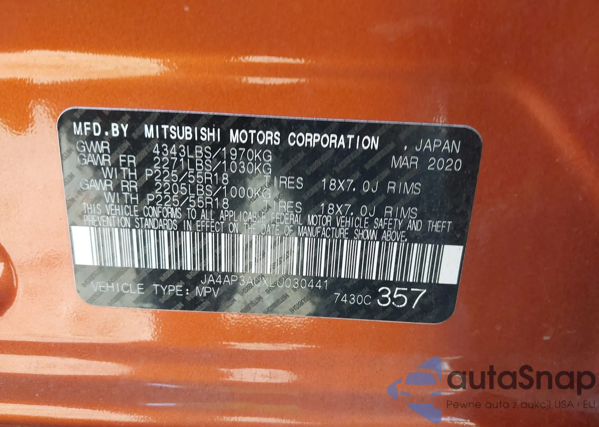 LOT: 43364074 VIN: JA4AP3AUXLU030441