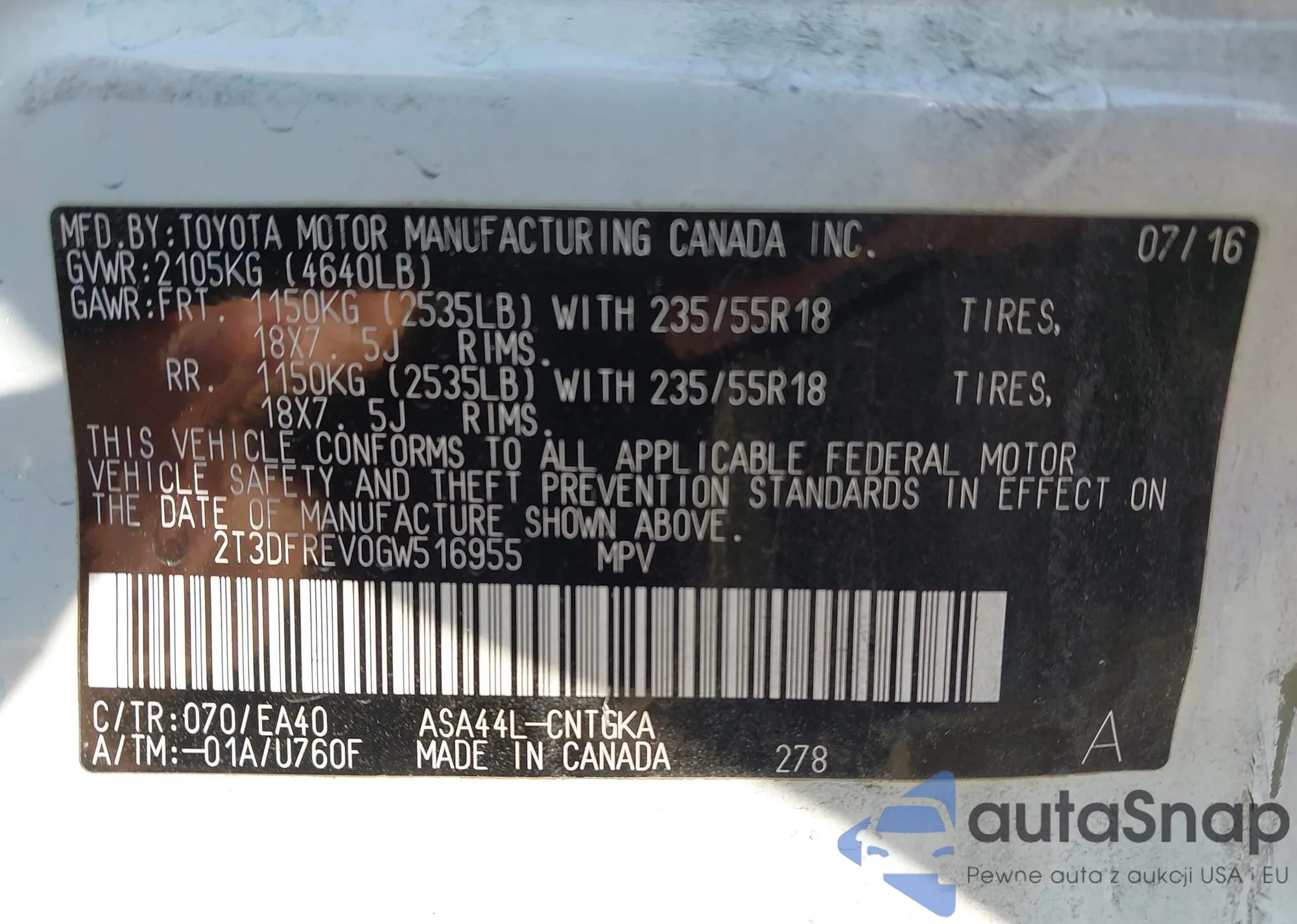 • VIN 2T3DFREV0GW516955