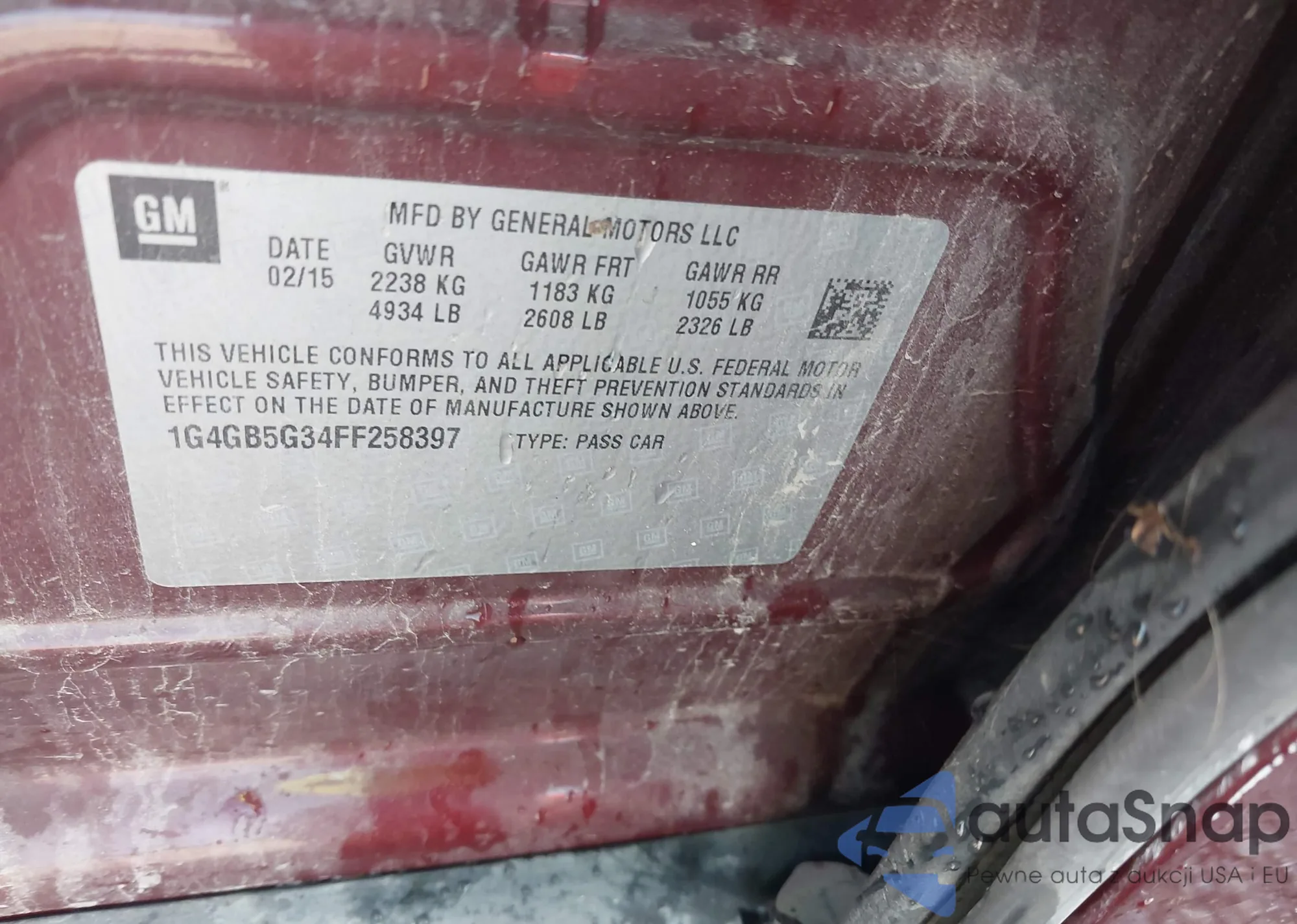 • VIN 1G4GB5G34FF258397