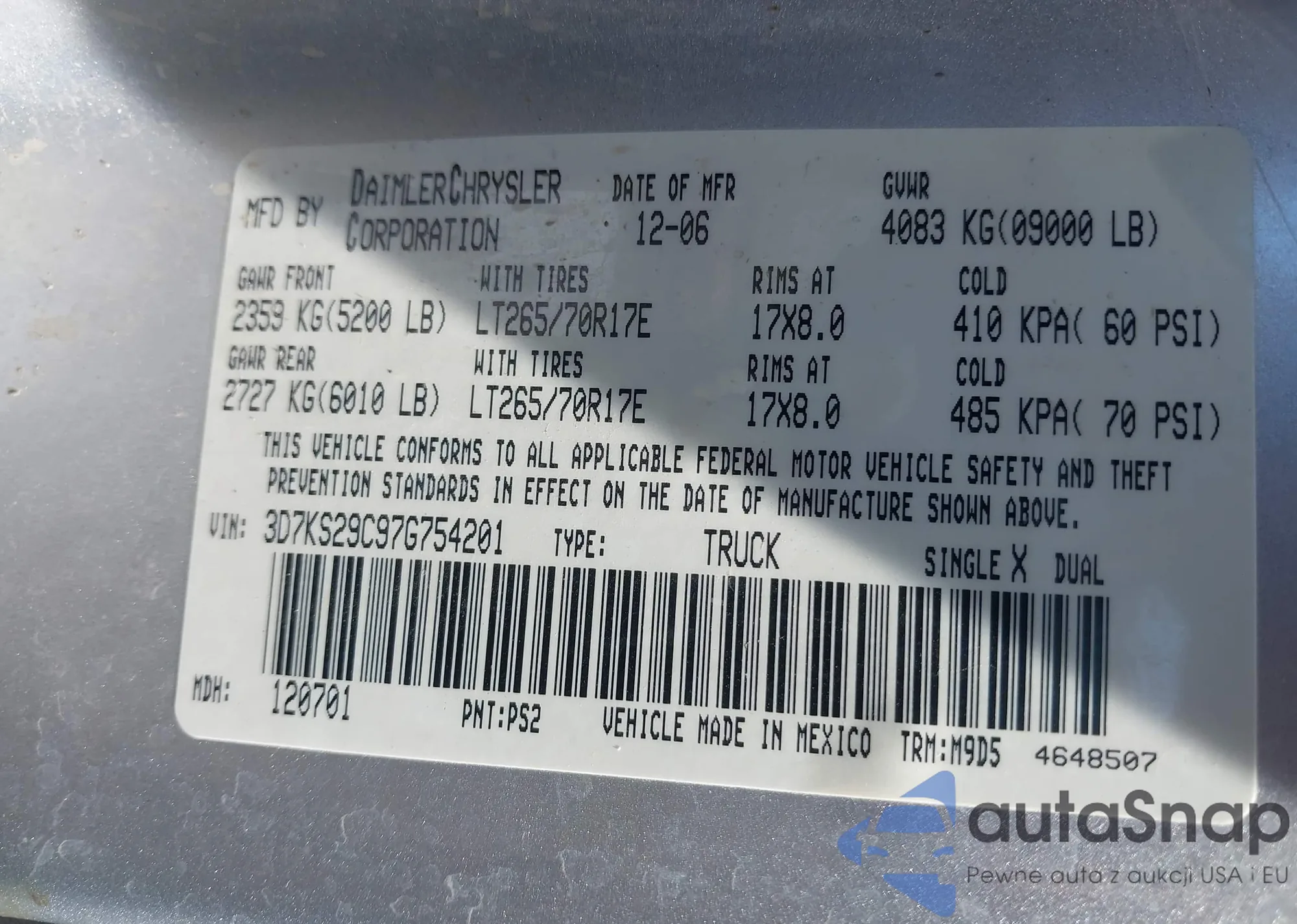 • VIN 3D7KS29C97G754201
