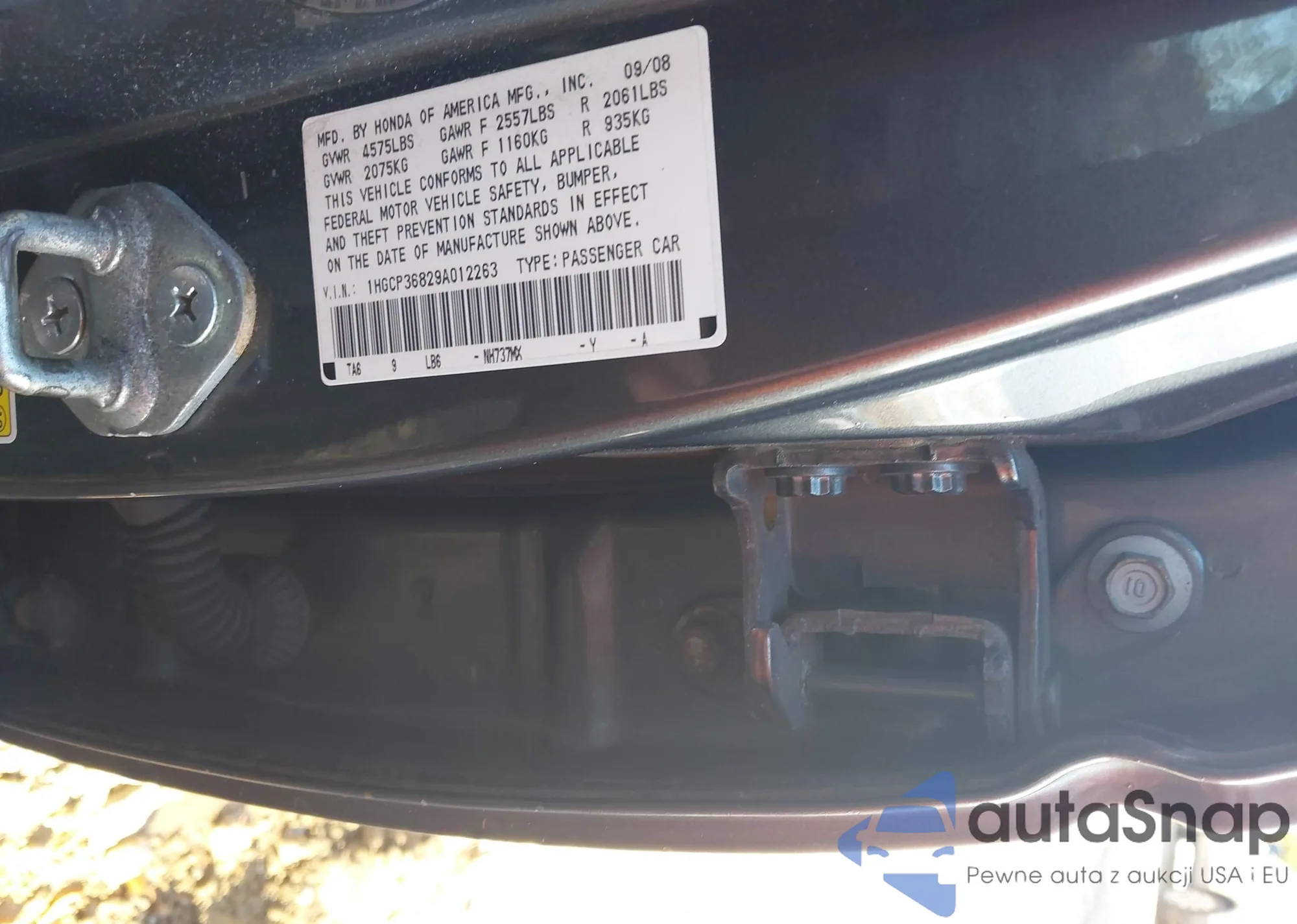 LOT: 43466729 VIN: 1HGCP36829A012263