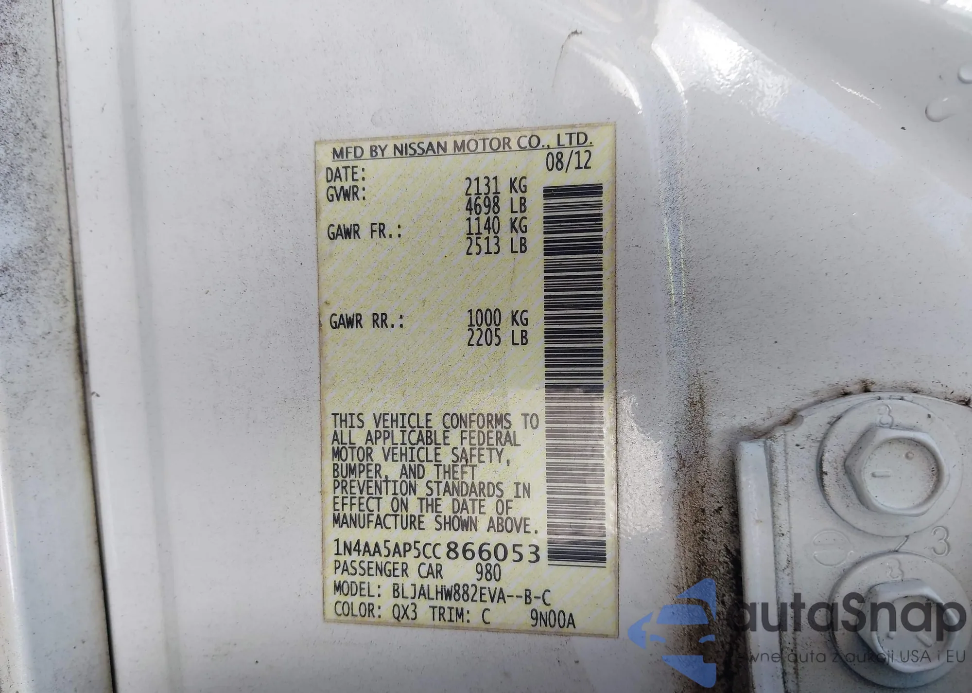 LOT: 43162948 VIN: 3CZRM3H55CG702841