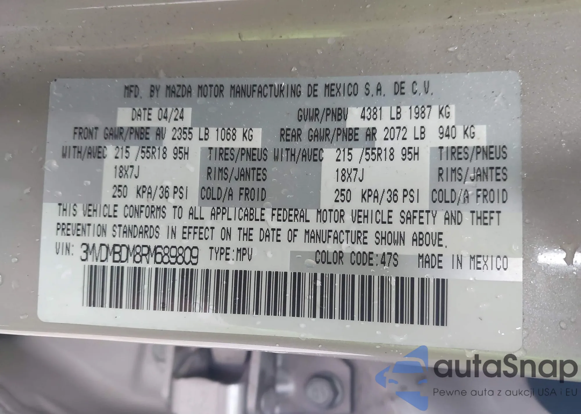 • VIN 3MVDMBDM8RM689809