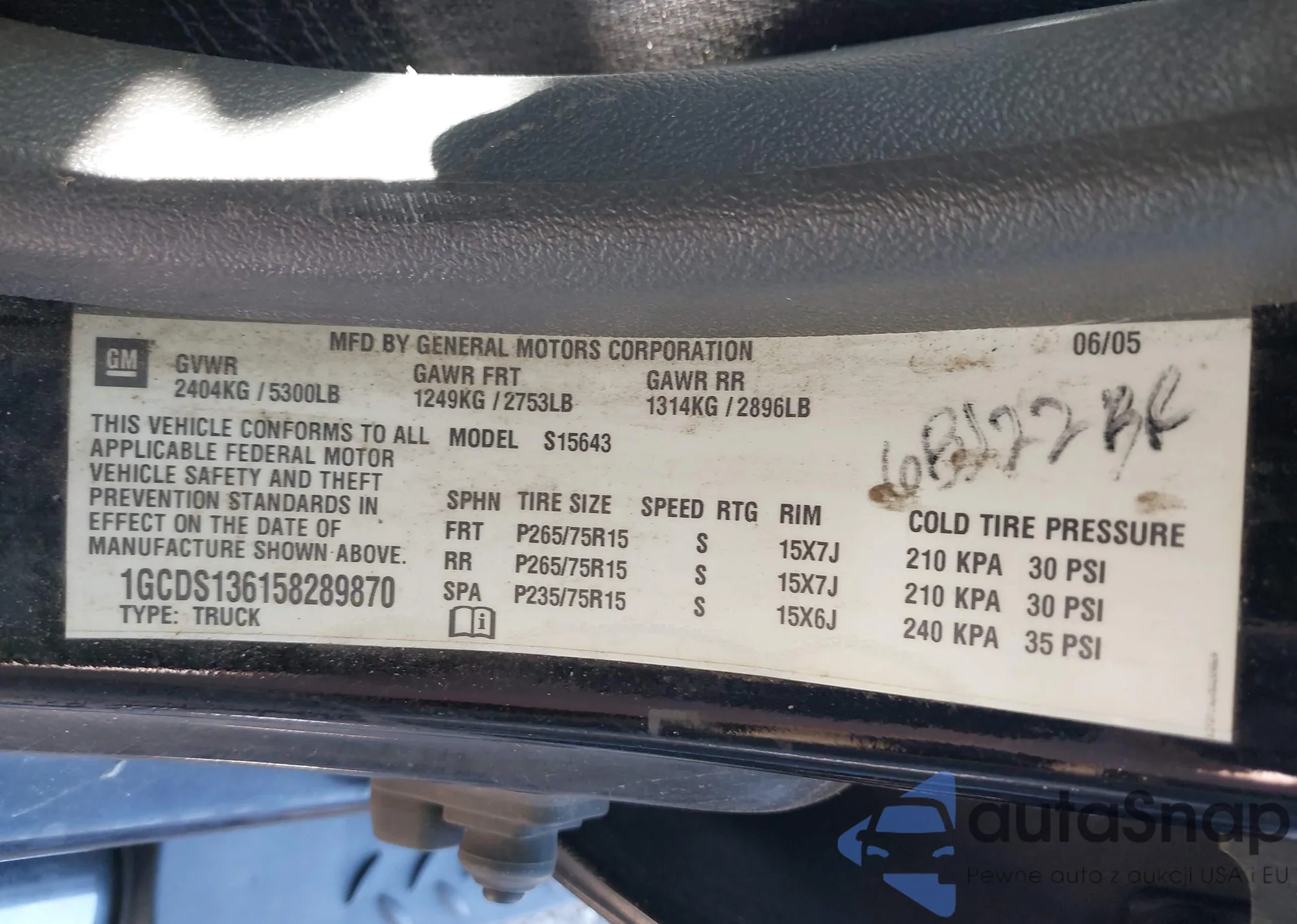 LOT: 43173533 VIN: 1GCDS136158289870