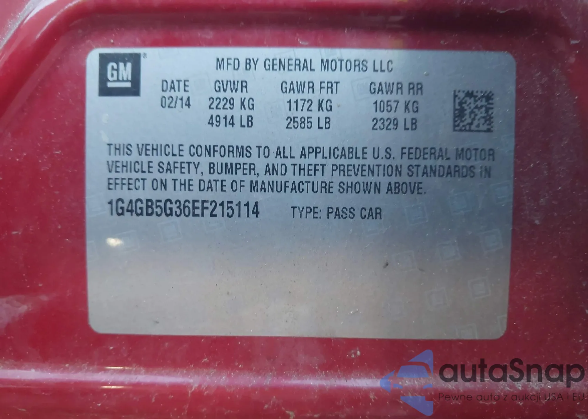 • VIN 1G4GB5G36EF215114