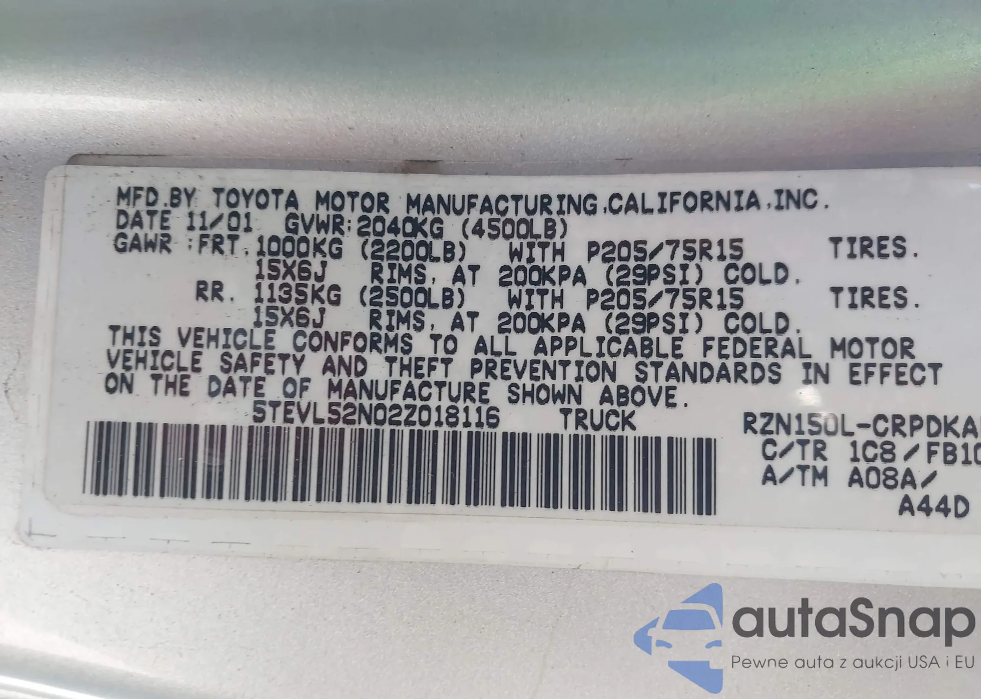 • VIN 5TEVL52N02Z018116