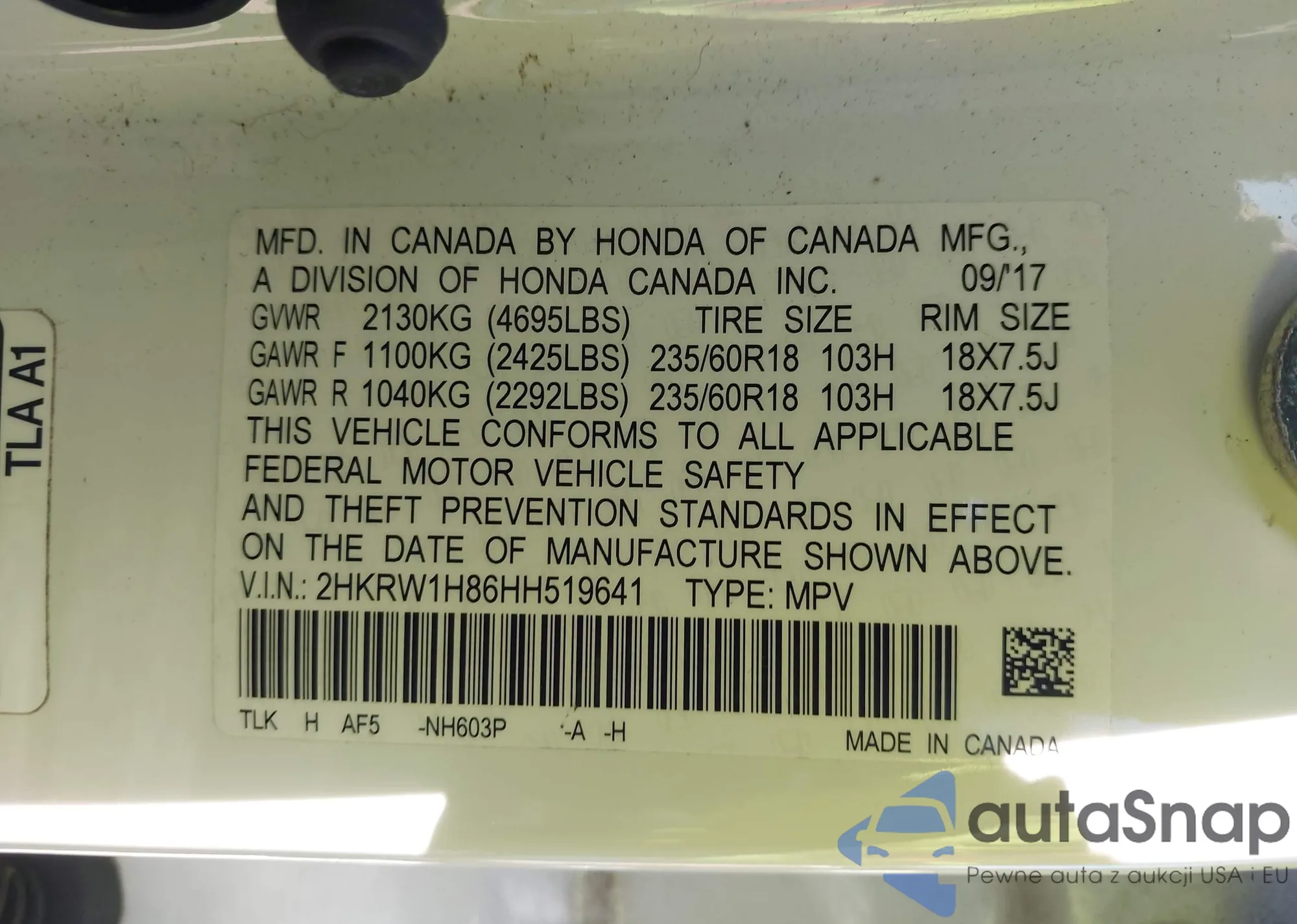• VIN JHMCR6F77HC025111