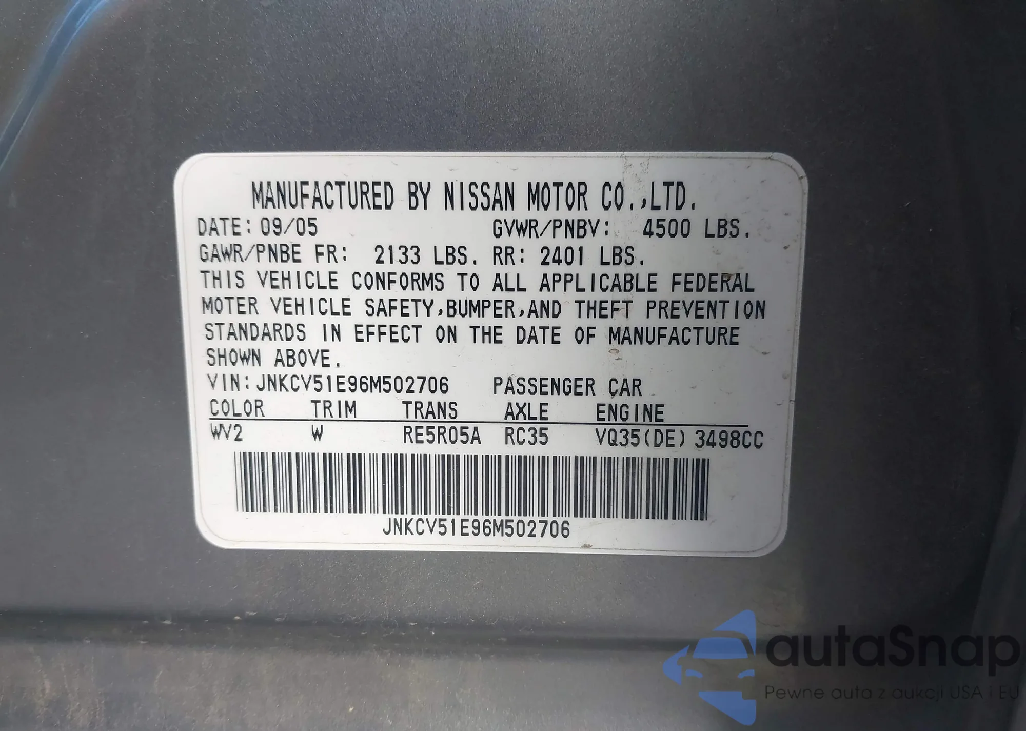 • VIN 1N4BL4CV6LC171505