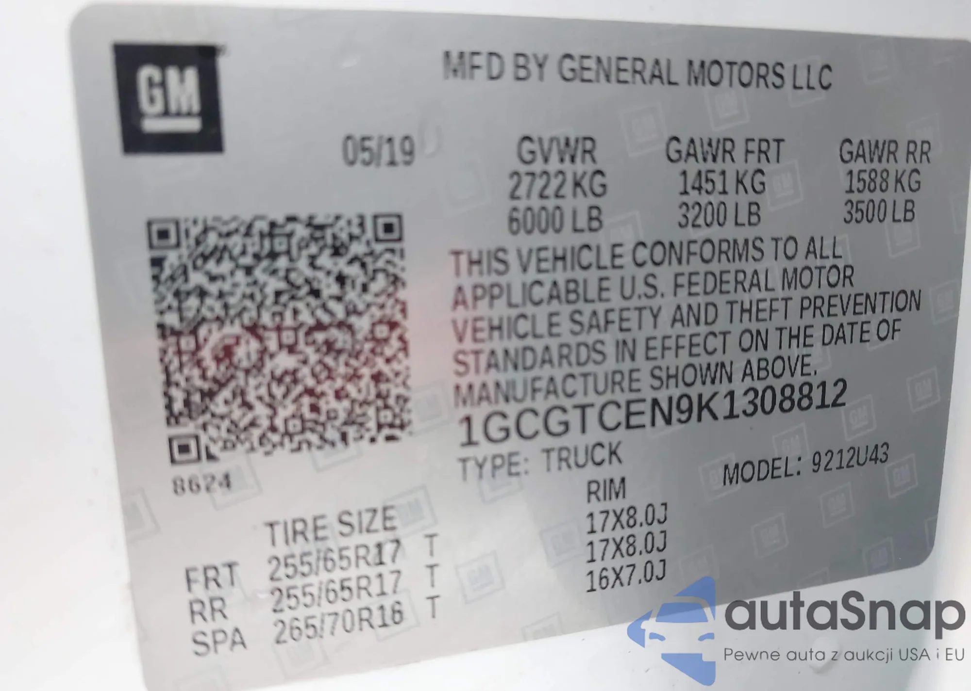 LOT: 43489243 VIN: 1GCGTCEN9K1308812