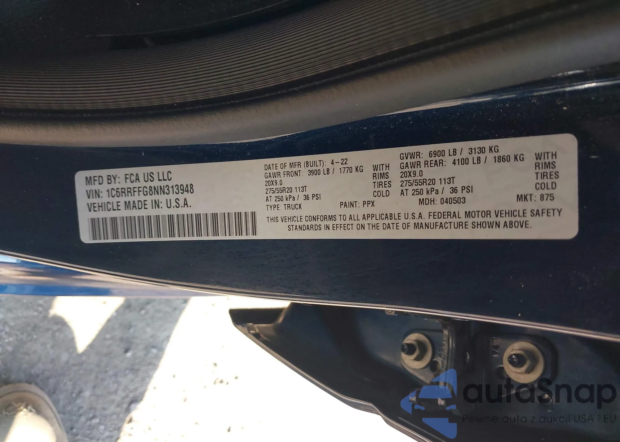 • VIN 1C6RRFFG8NN313948