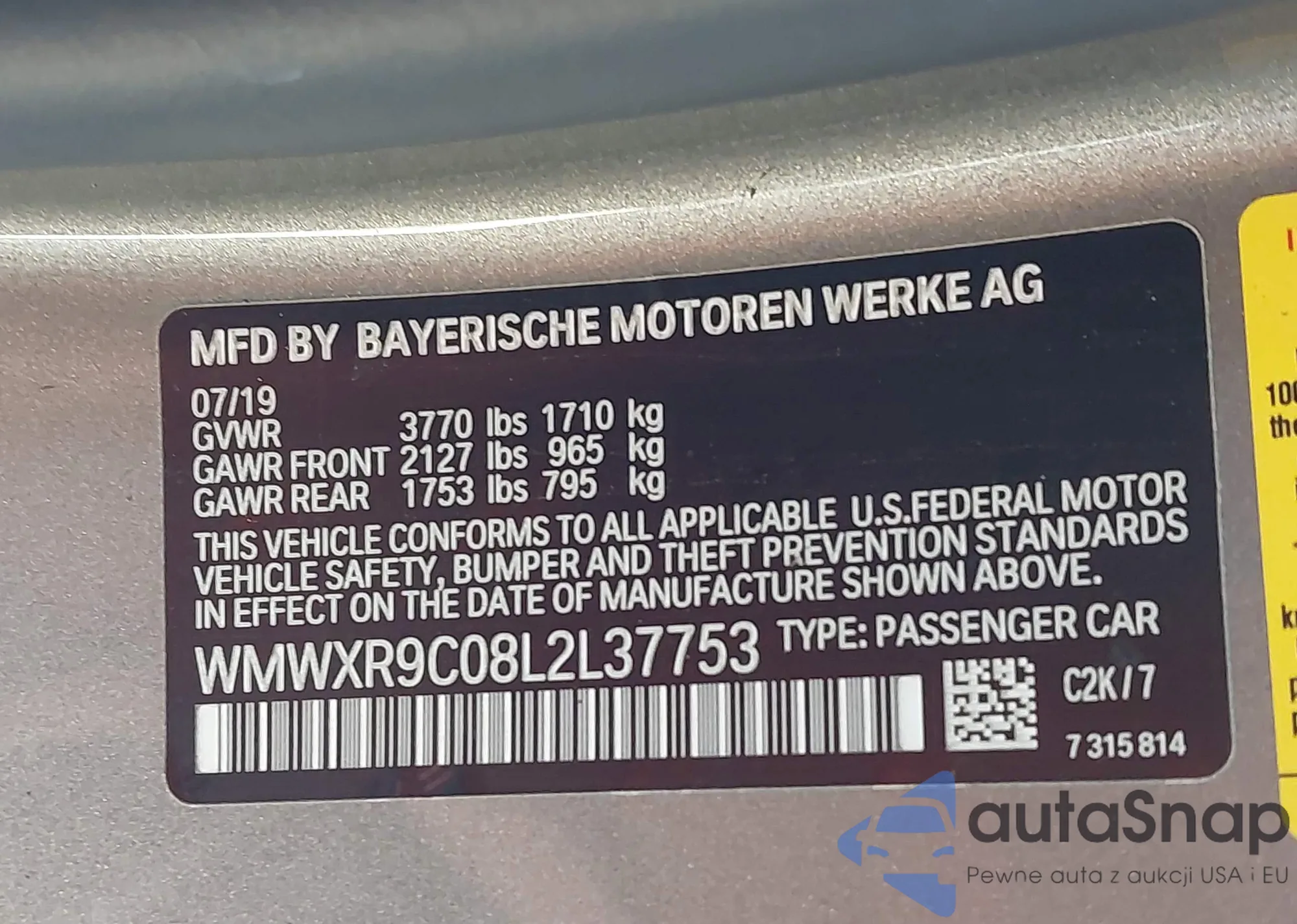 • VIN WMWXR9C08L2L37753