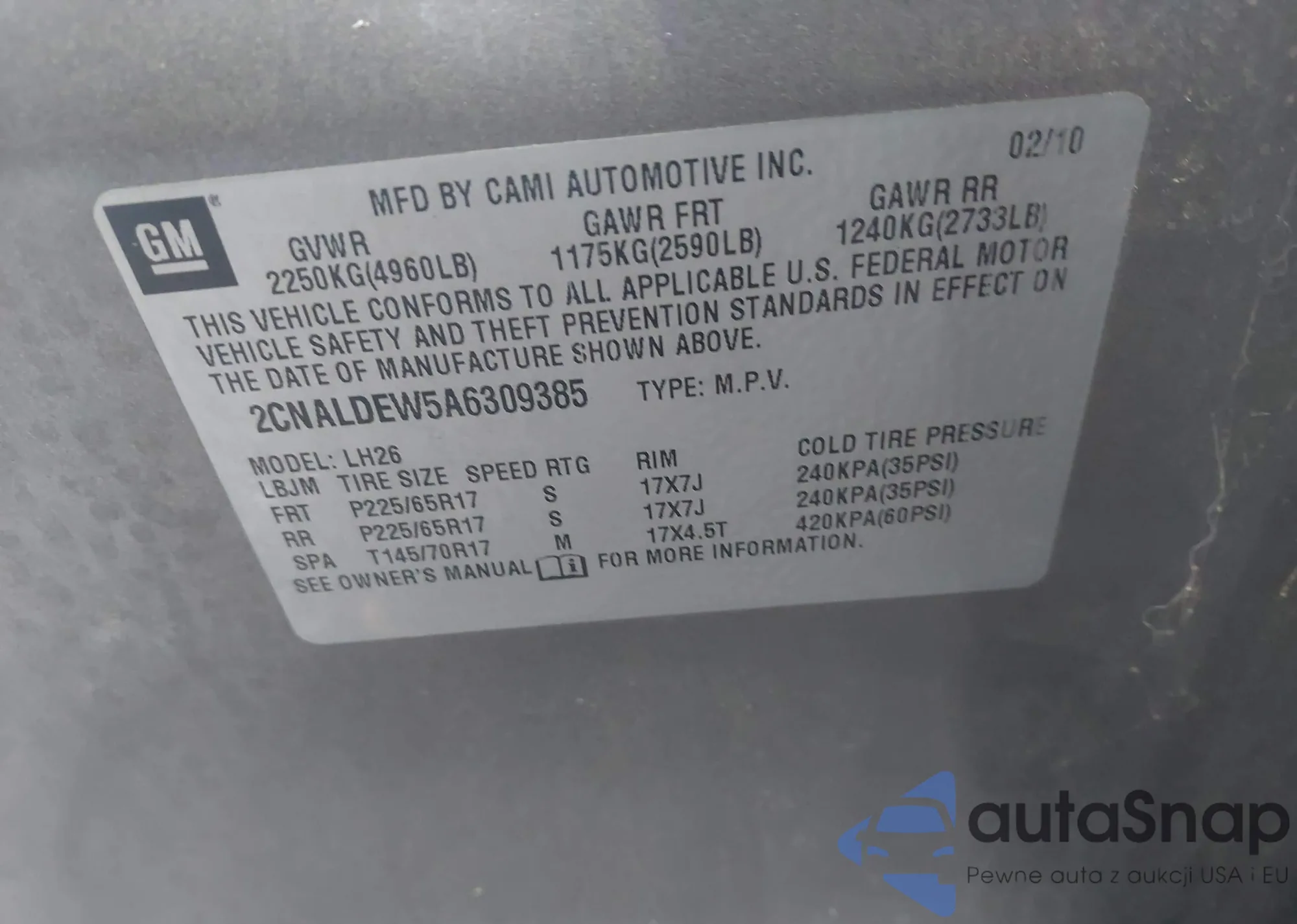 • VIN 2CNALDEW5A6309385